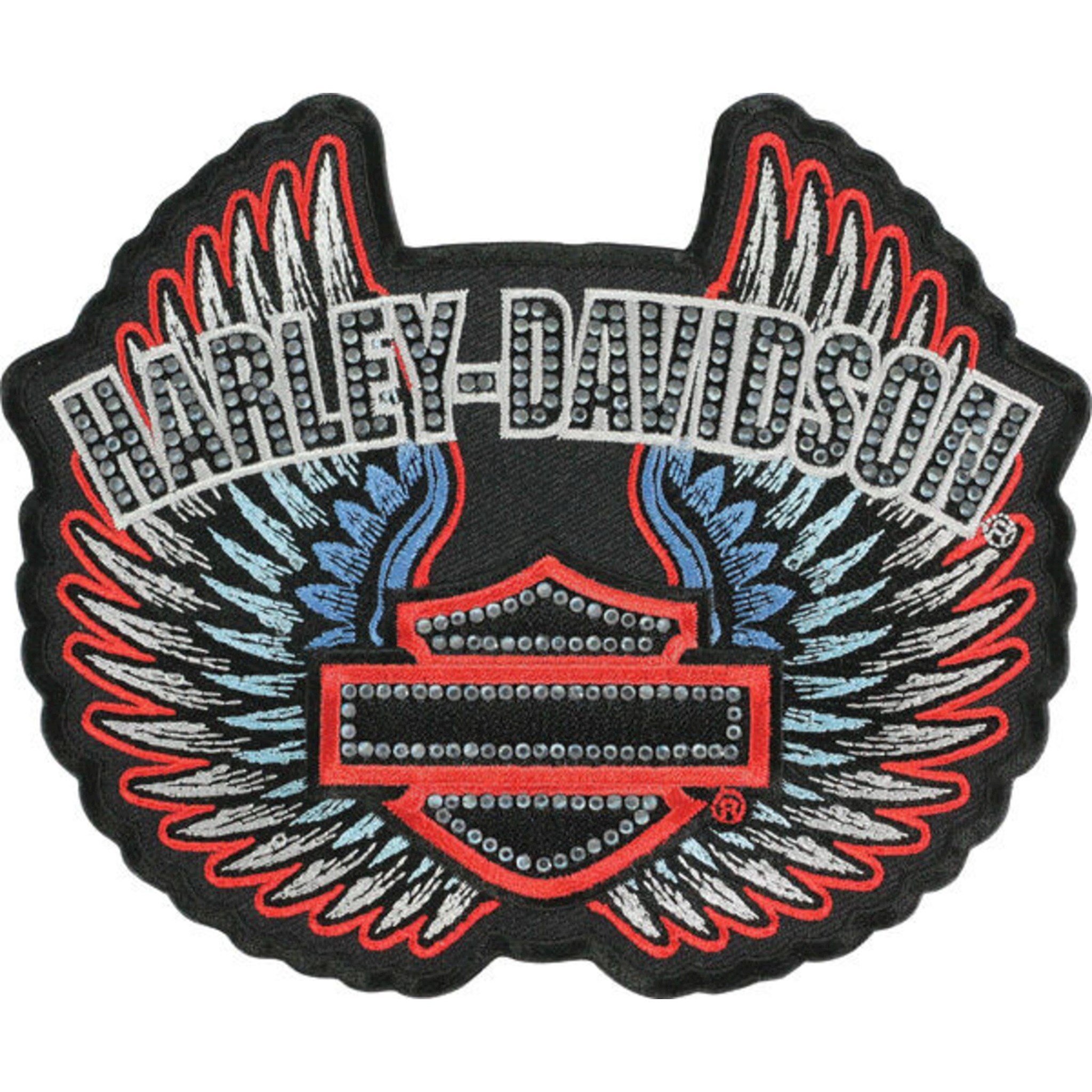 Harley-Davidson Patch. Featuring rhinestones. Size: Approx. 15 x 12 cm.