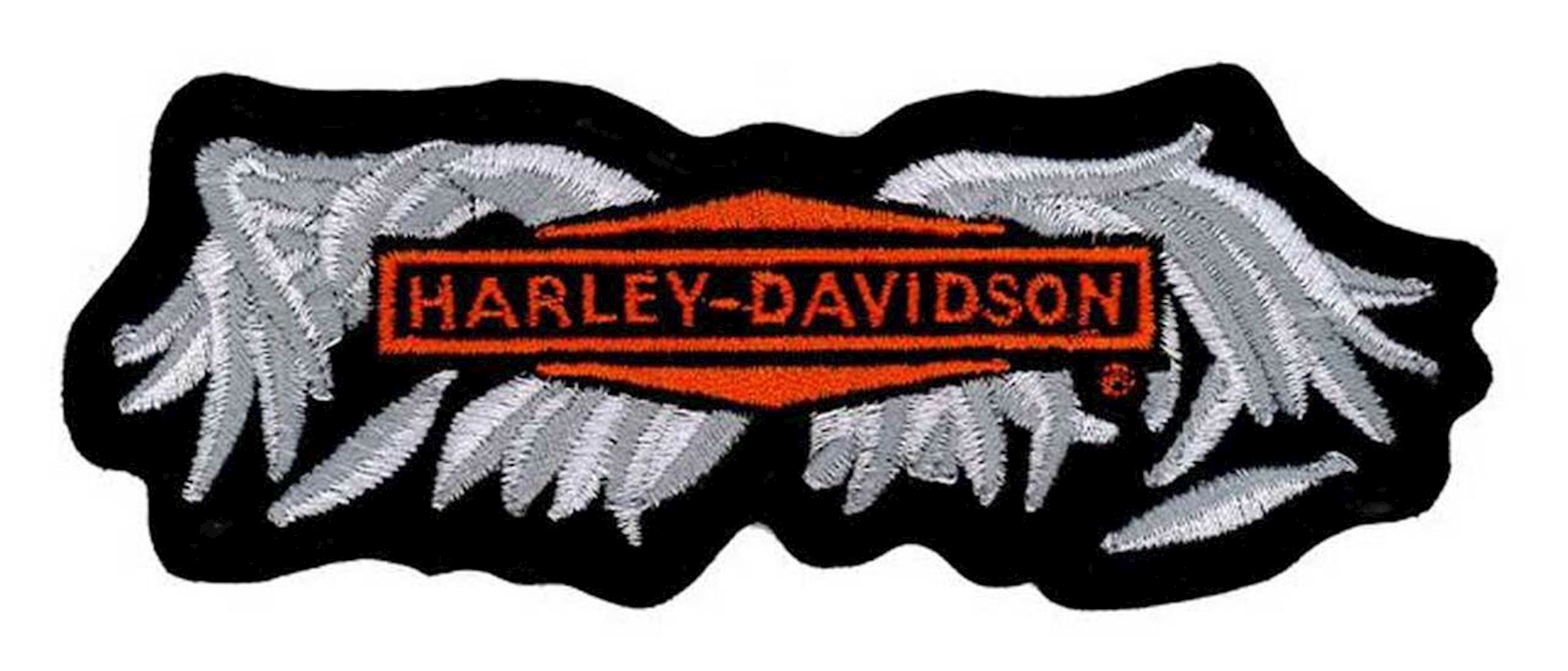 Harley-Davidson® Embroidered Broken Wings Emblem Patch, EM330063. Awesome embroidered winged graphic with bold Harley-Davidson® script. Medium size patch. Size: 5.125'' W x 1.8125'' H. Great looking patch to be sewn on the back of your vest or jacket.