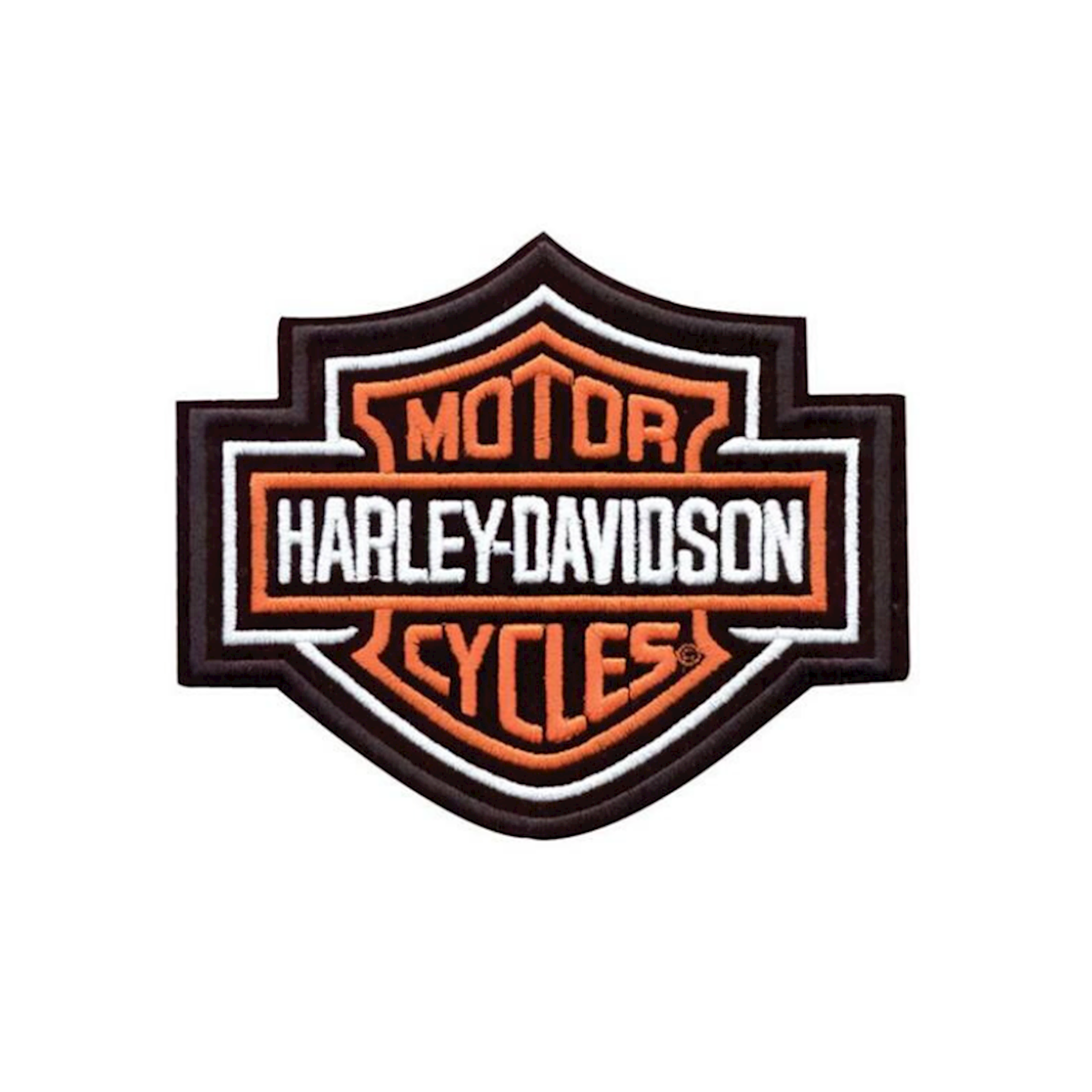 Harley-Davidson® Patch. Orange Bar & Shield Logo. Medium Size. 5 5/8" W x 4 5/8" H.