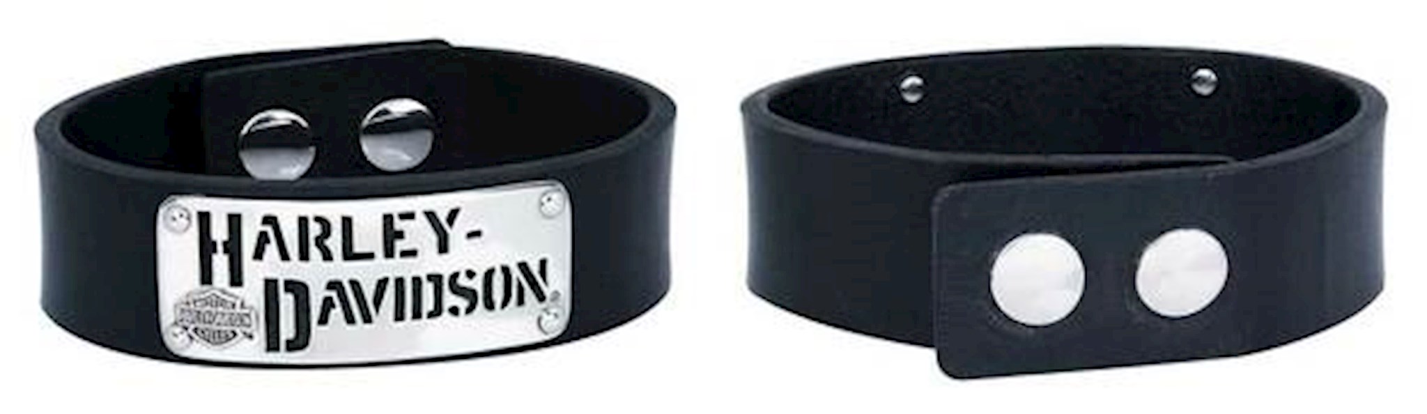 Harley-Davidson® Men's Genuine Leather Cut-Out Adjustable Cuff, HDB0299. This genuine leather cuff features a stainless steel plate with Harley-Davidson® script, and raised Bar & Shield logo. Constructed from cowhide leather, and high quality stainless steel. This bracelet will hold up ride after ride. Secure snap closure for an easily adjustable fit. Hand crafted with the highest attention to detail and quality.