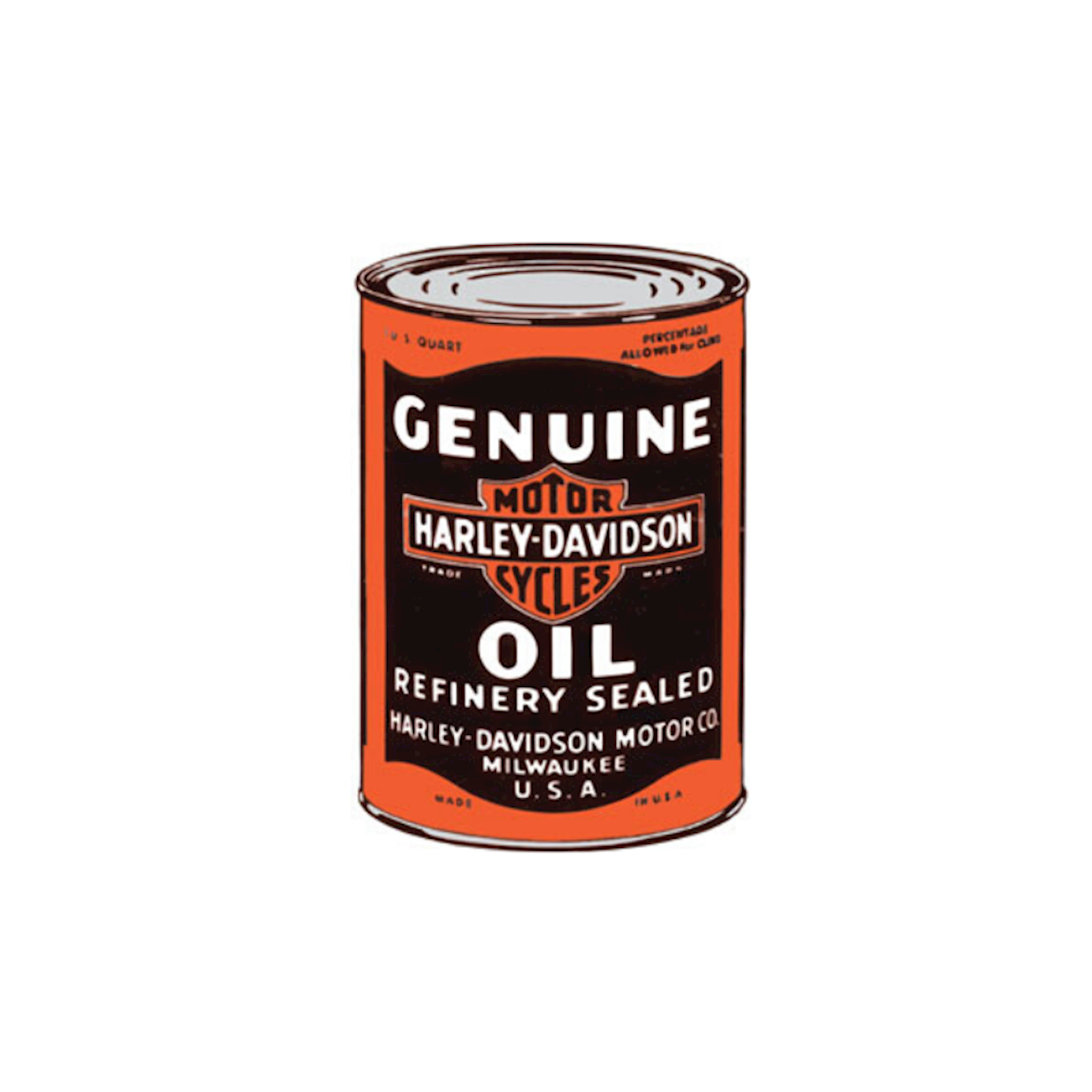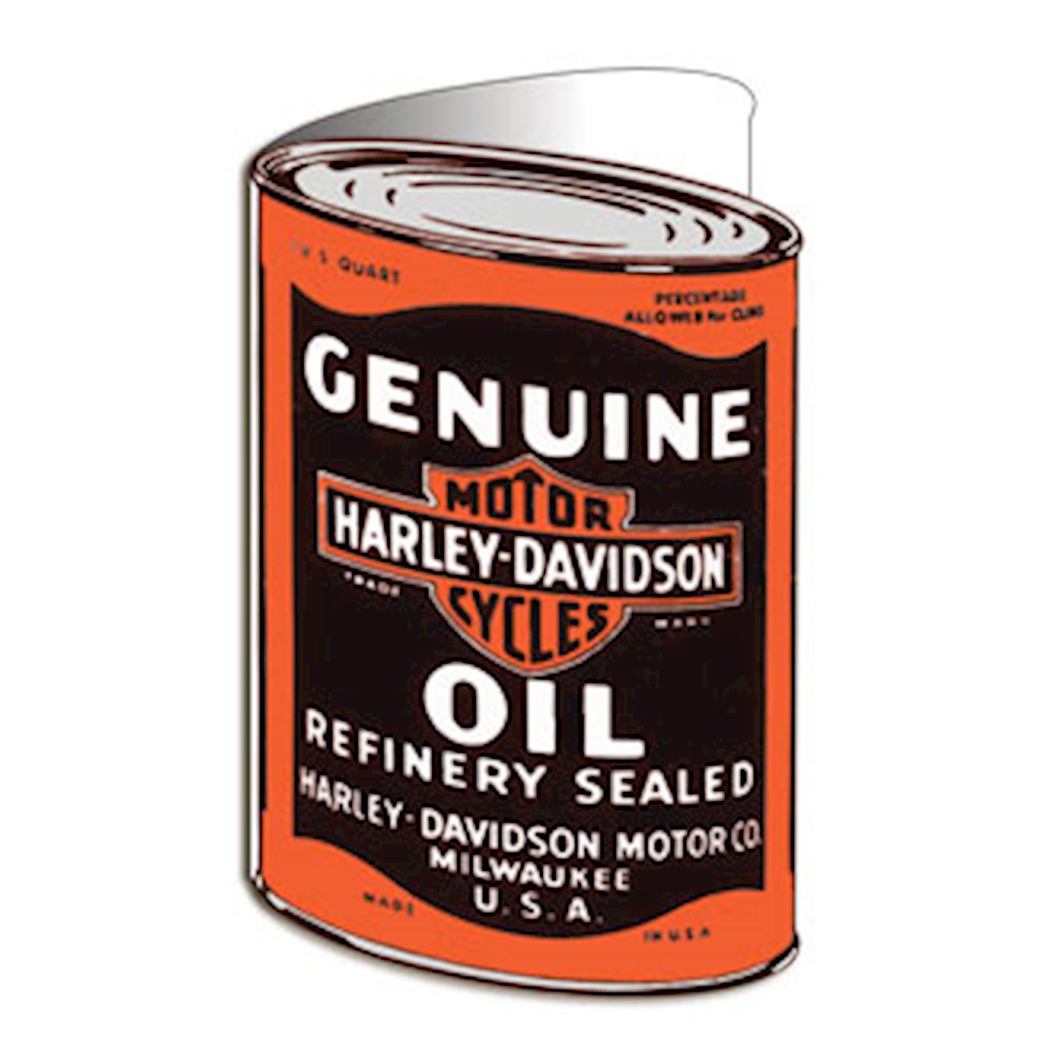 The Harley-Davidson® Oil Can Greeting Card has been die-cut into an oil can shape and is blank on the inside.