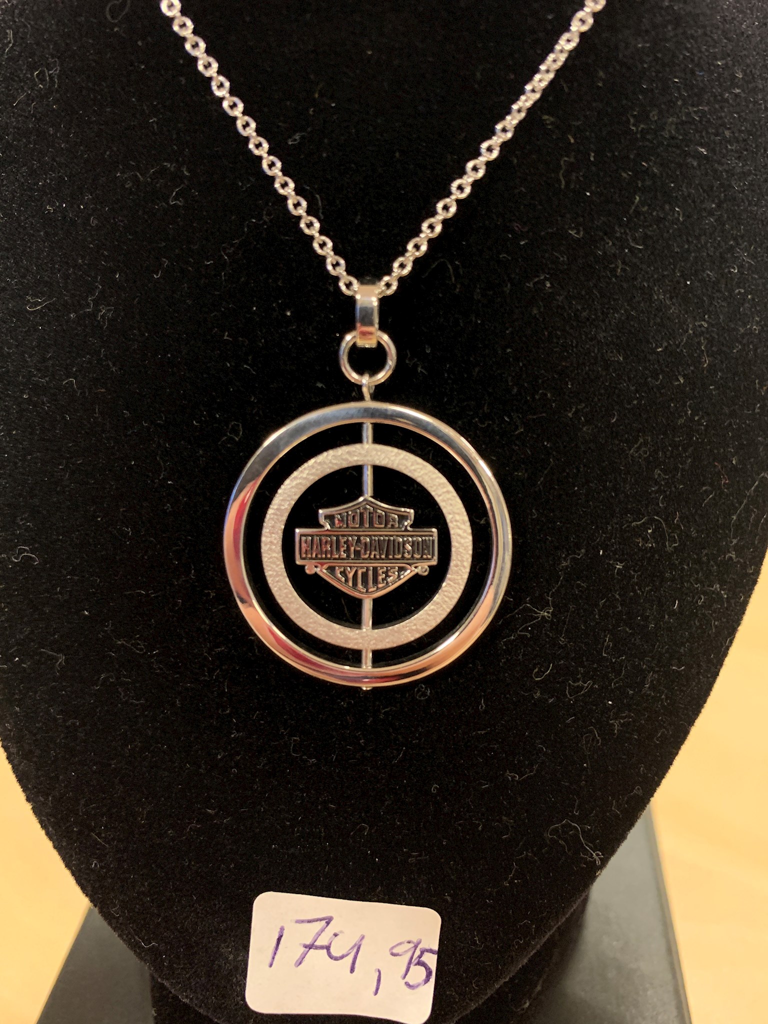 Harley-Davidson® Women's Sterling Silver B&S Circle Spinner Necklace