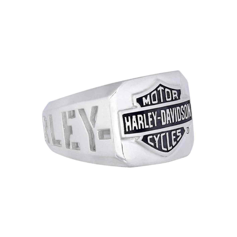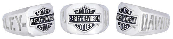 Harley-Davidson® Men's H-D Cut Out Ring. Famous Bar & Shield emblem. Awesome Harley-Davidson® script cut out around band. Made of Sterling Silver. Hand-crafted with the highest attention to detail.