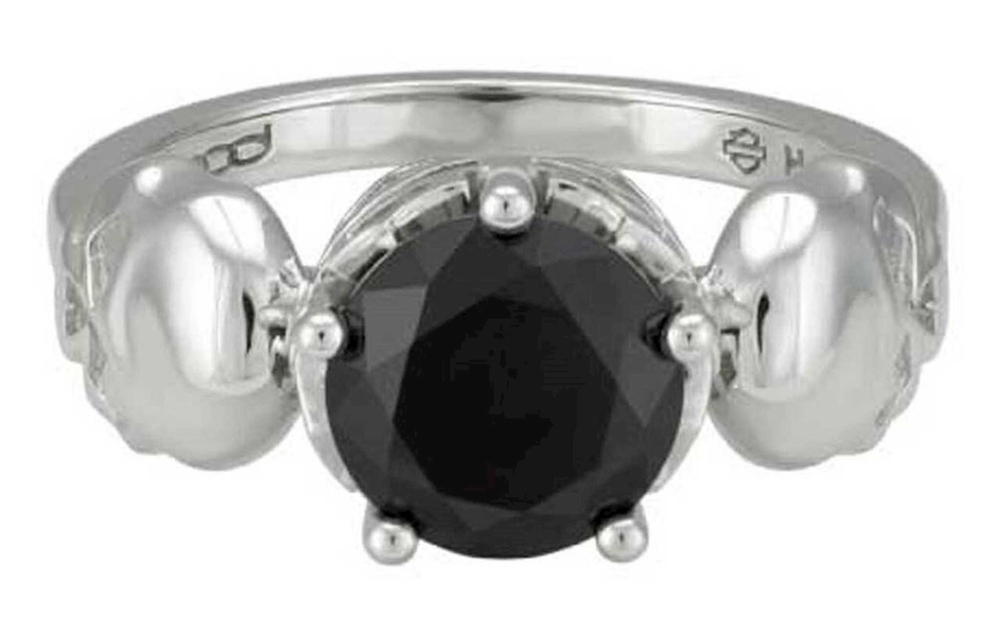 Harley-Davidson® Women's Silver Skull & Stone Ring, HDR0514. Stunning black center crystal accented by the iconic Bar & Shield logos and two sculpted Willie G Skull logos. Made from shiny, high-quality Sterling Silver. This ring is hand-crafted with the highest attention to detail and quality, utilizing the finest materials. This gorgeous ring is yet another must-have to add to your H-D collection.