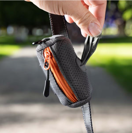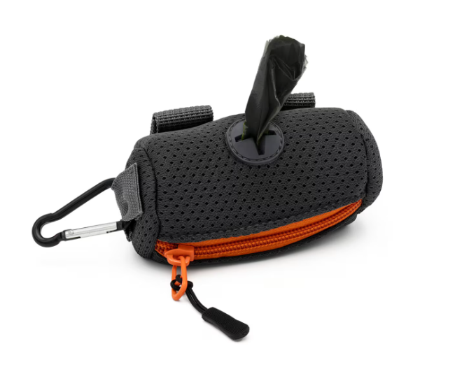 Disposable pet bag dispenser with Harley - Davidson applique logo. The pet bag dispenser includes metal carabiner clip and velcro loops to secure to leash or belt loop for easy carrying. Bags are included. Dimensions: 2.5" W x 2" H x 2" D 10 x 5 x 5 cm.