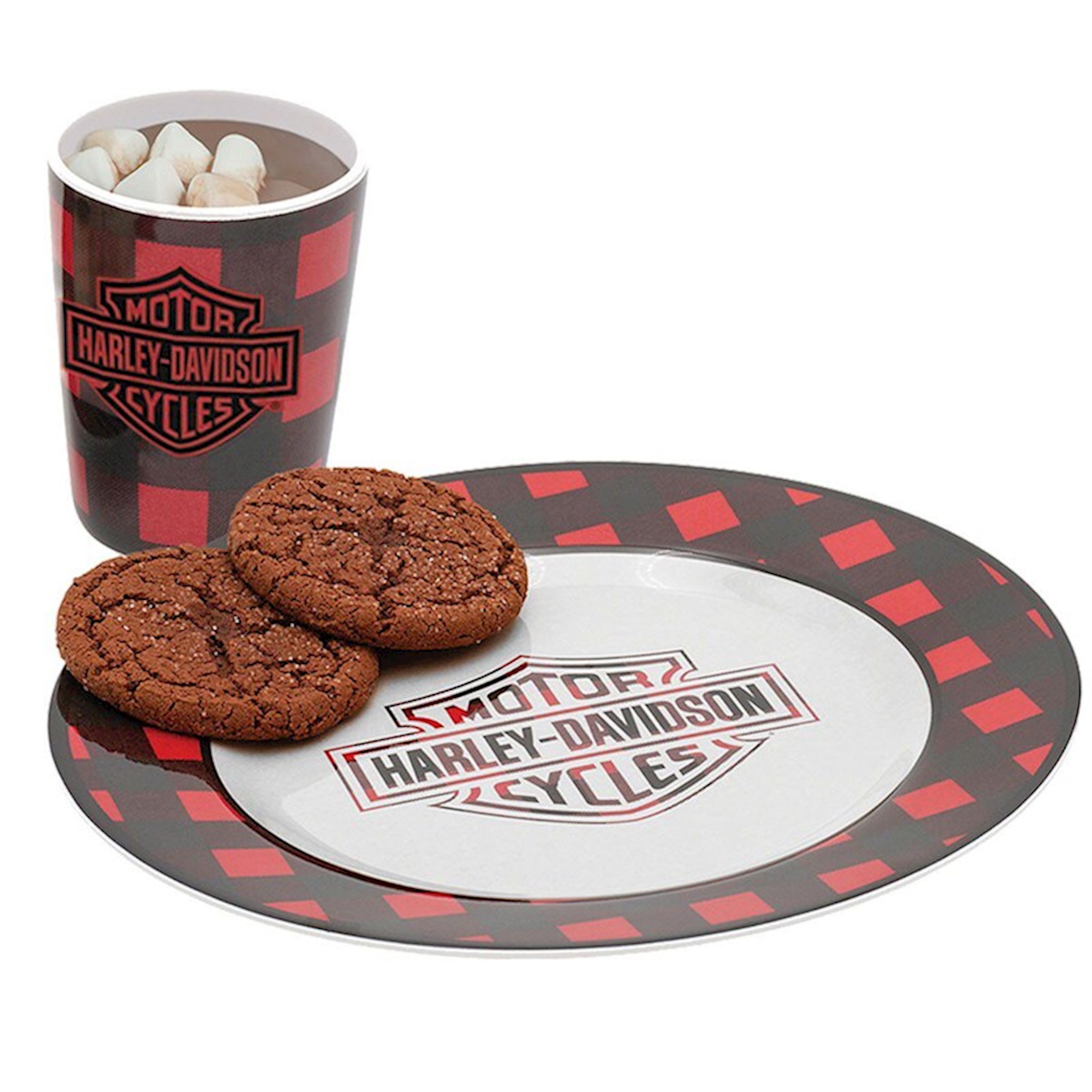 Harley-Davidson® Holiday Plaid Cookie Plate & Cup Set