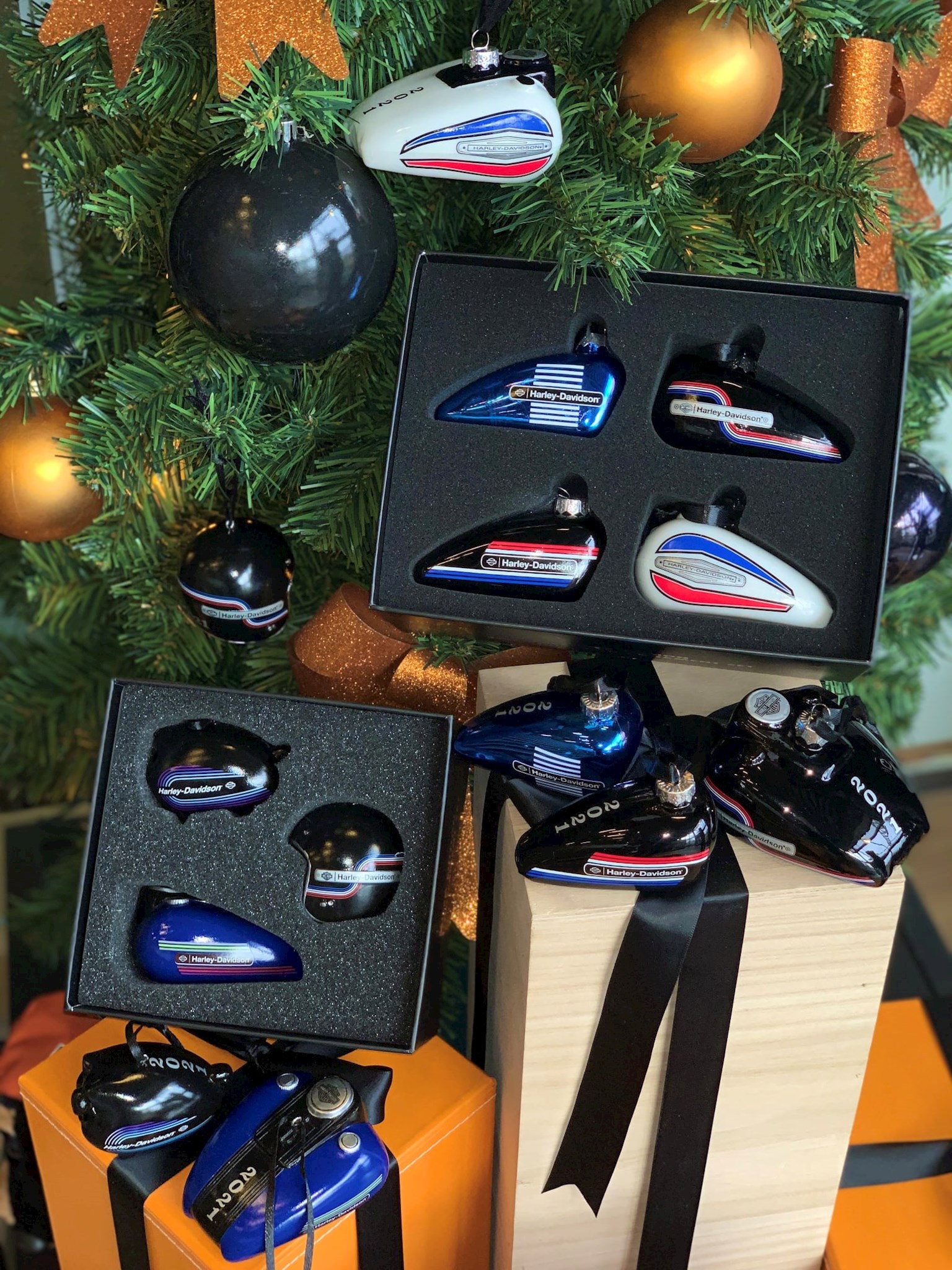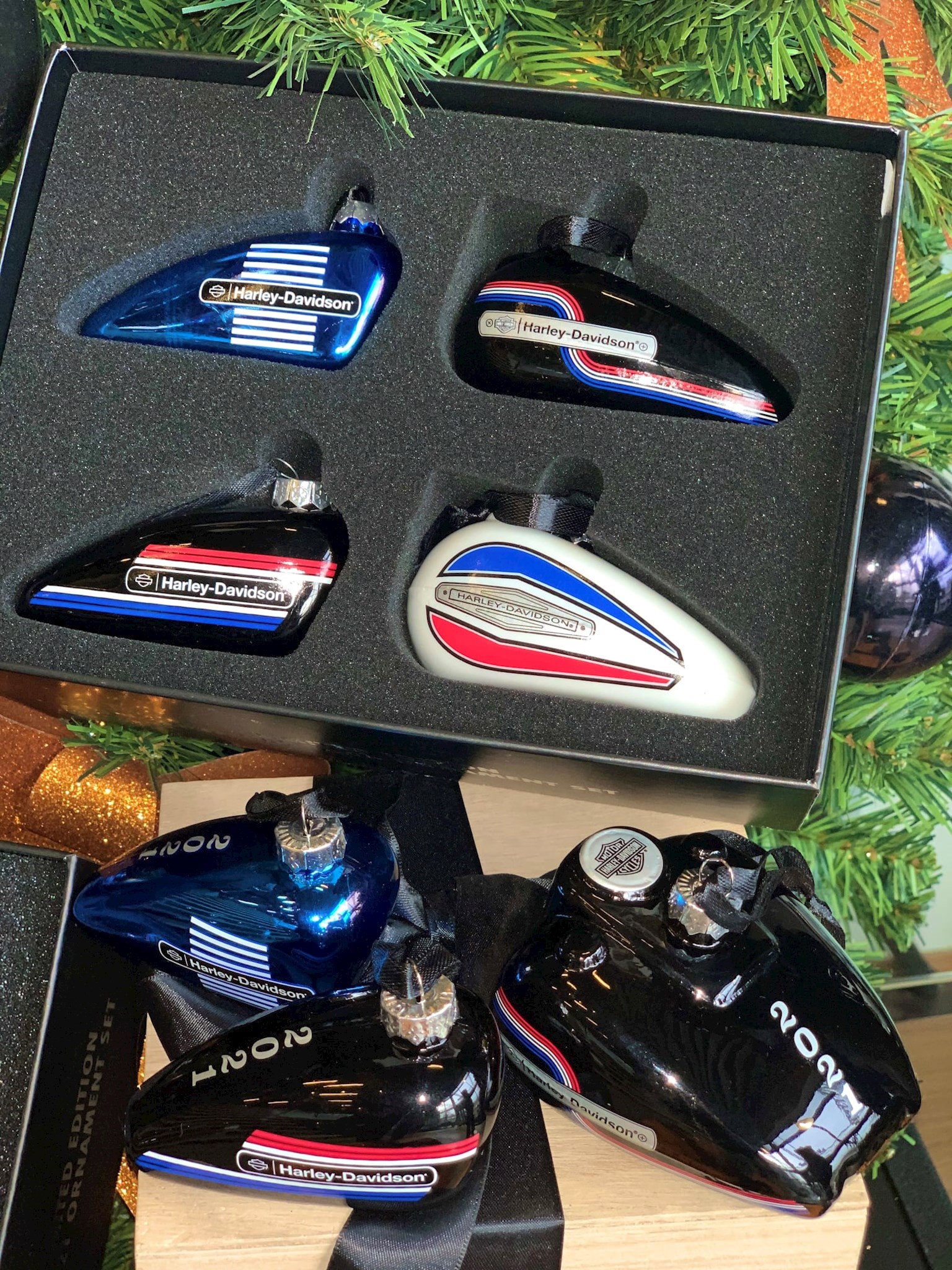 Harley-Davidson® 2021 Motorcycle Gas Tank Holiday Tree Ornament Set - Set of 4