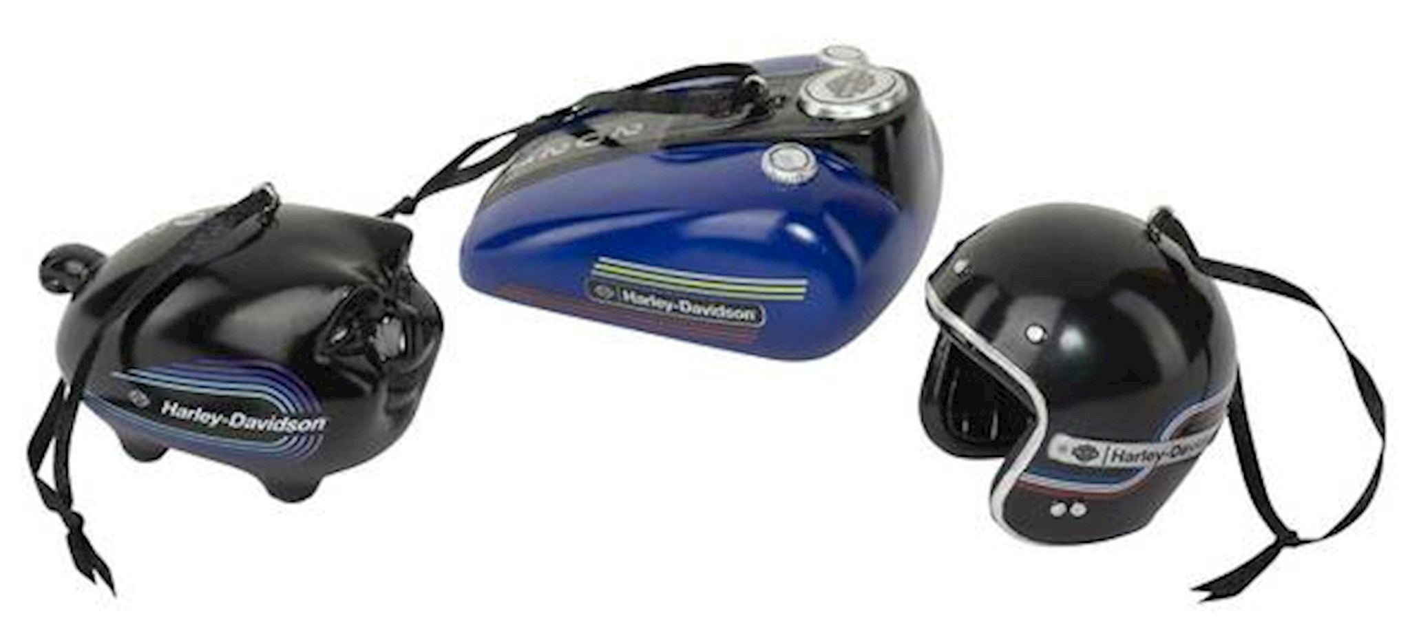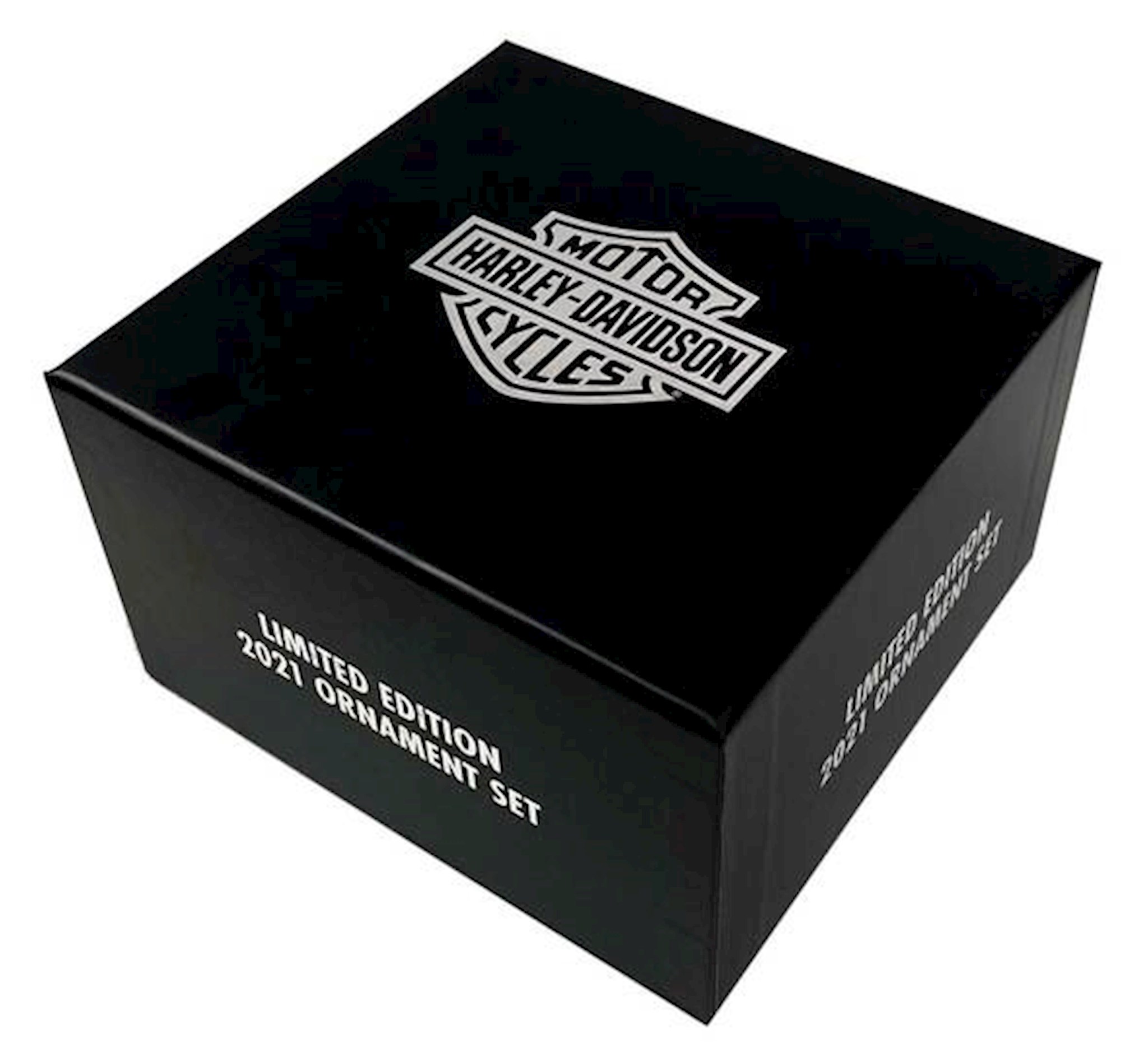Harley-Davidson® Limited Edition 2021 Ornament Set, HDX-99218. Set of three custom polyresin ornaments. Limited Edition set includes a Gas Tank, Hog, and Helmet with coordinating retro graphics. Dated 2021. Deluxe retail packaging. Dimensions: Gas Tank: 3.5" W x 1.9" H x 2.8" D, Hog: 2.8" W x 2.1" H x 1.9" D, Helmet: 2" W x 2" H.