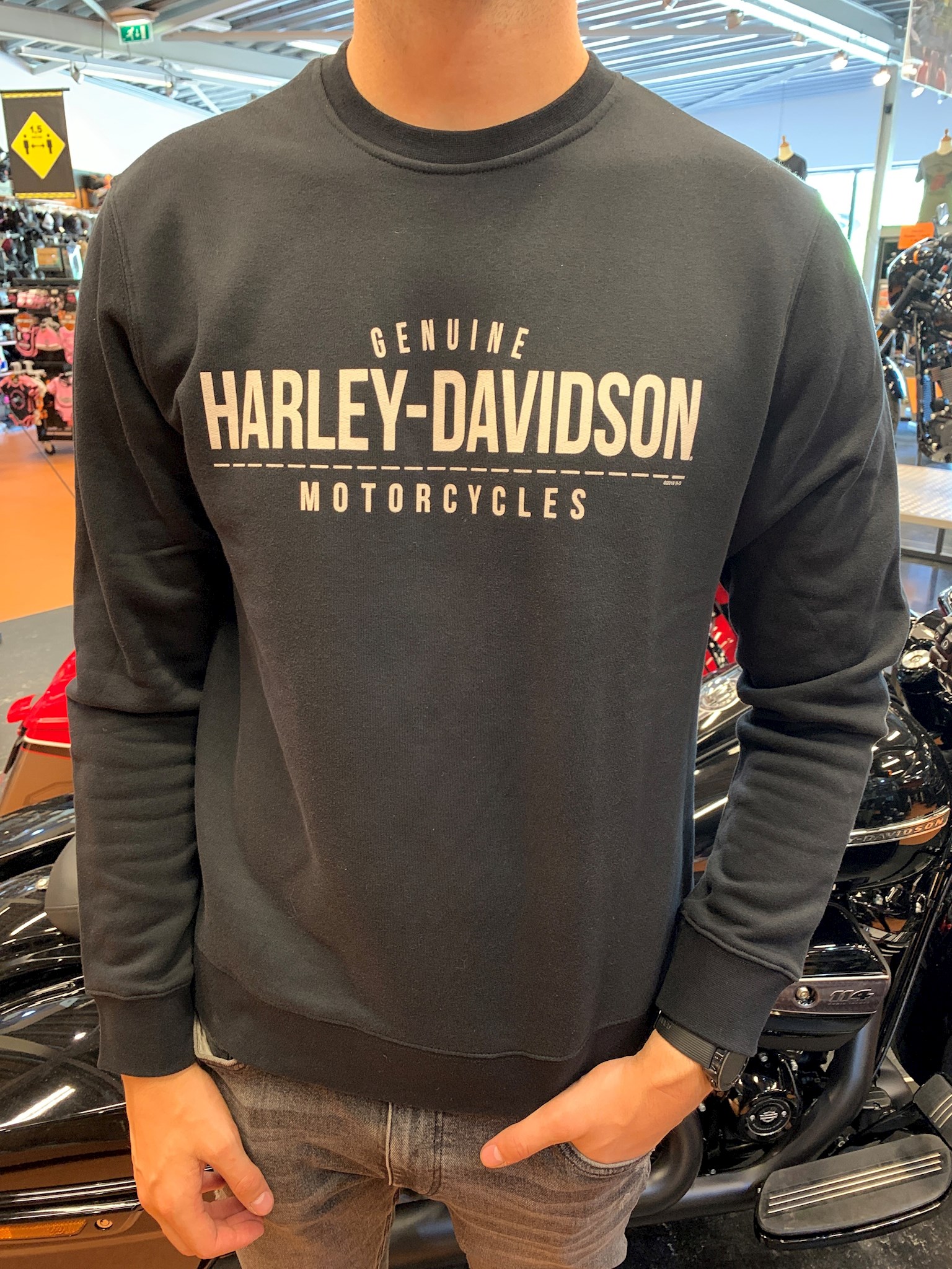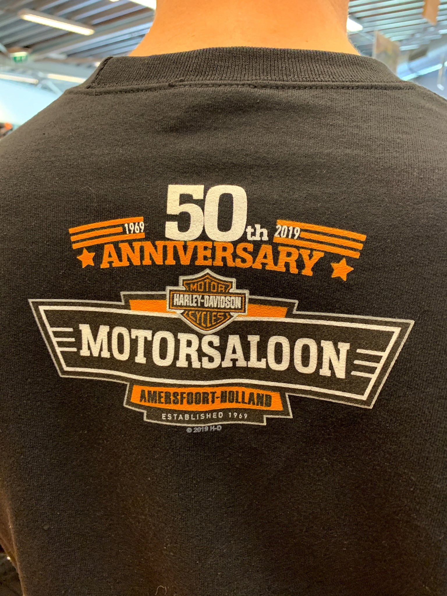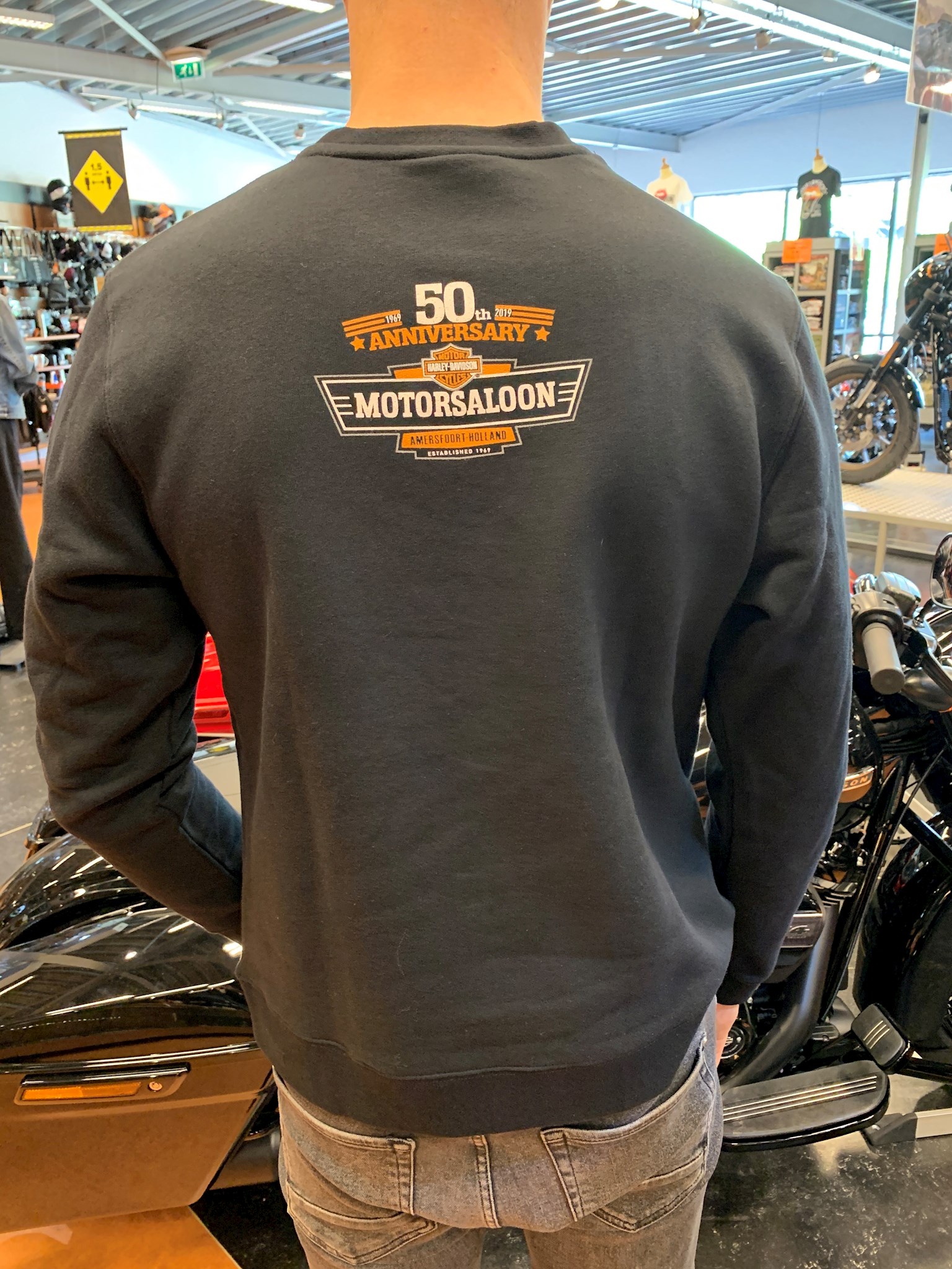 Neckline: Crew Neck. Type: Sweatshirt. Color: Black. Motor Saloon Back Print. Material: 80% Cotton 20% Polyester.