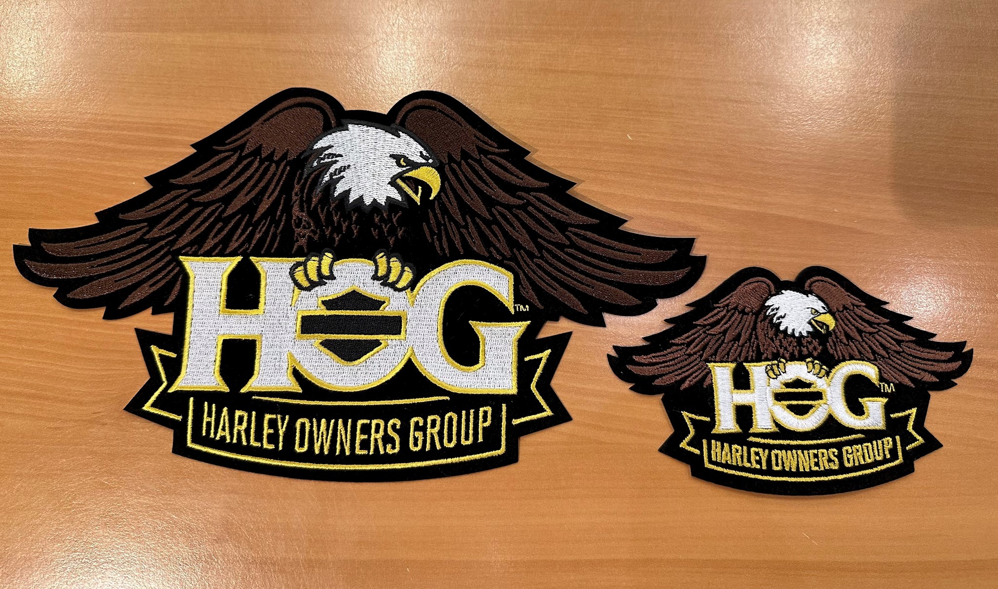 1 stuk. Kleine Harley Owners Group Patch. Breedte 14 cm, hoogte 8 cm.