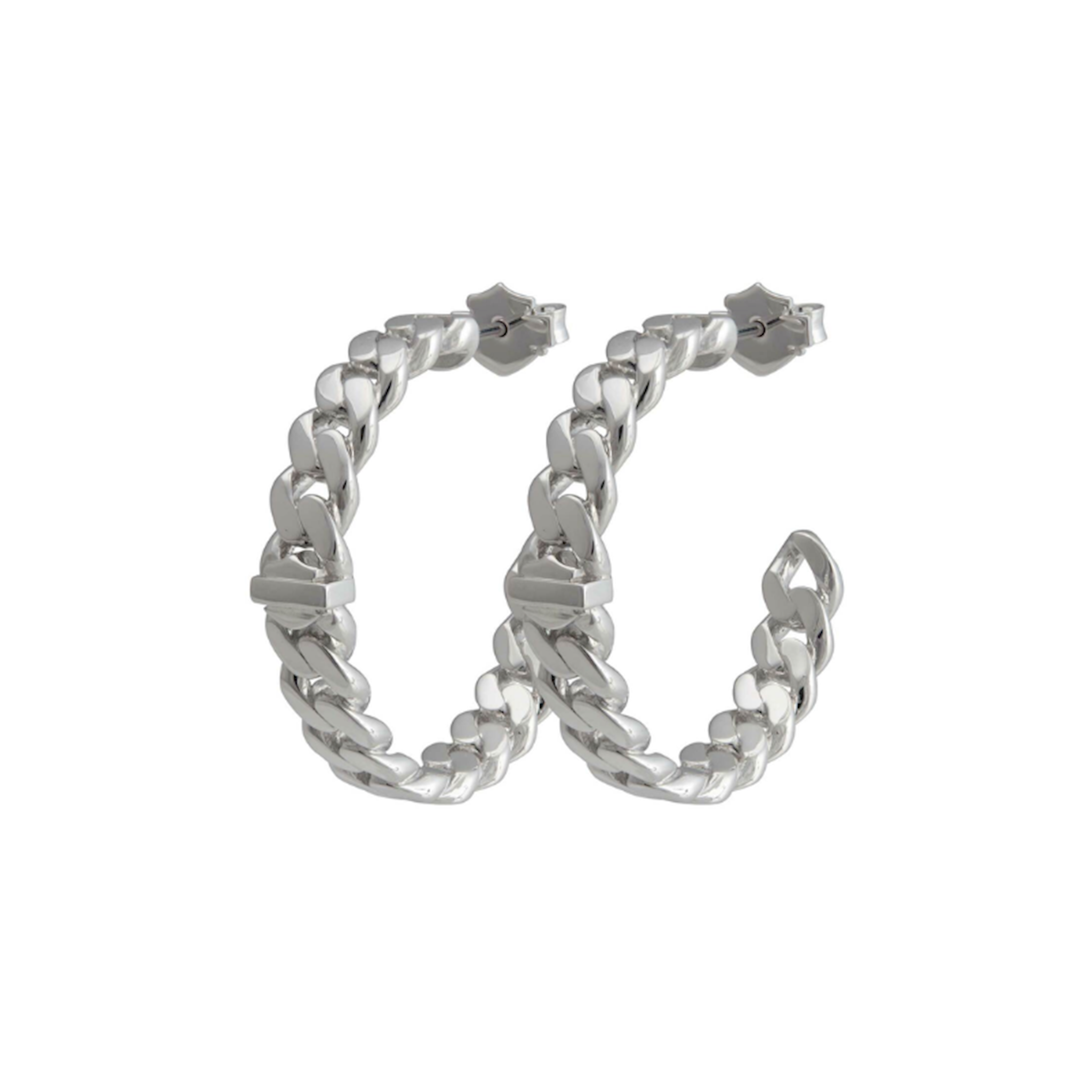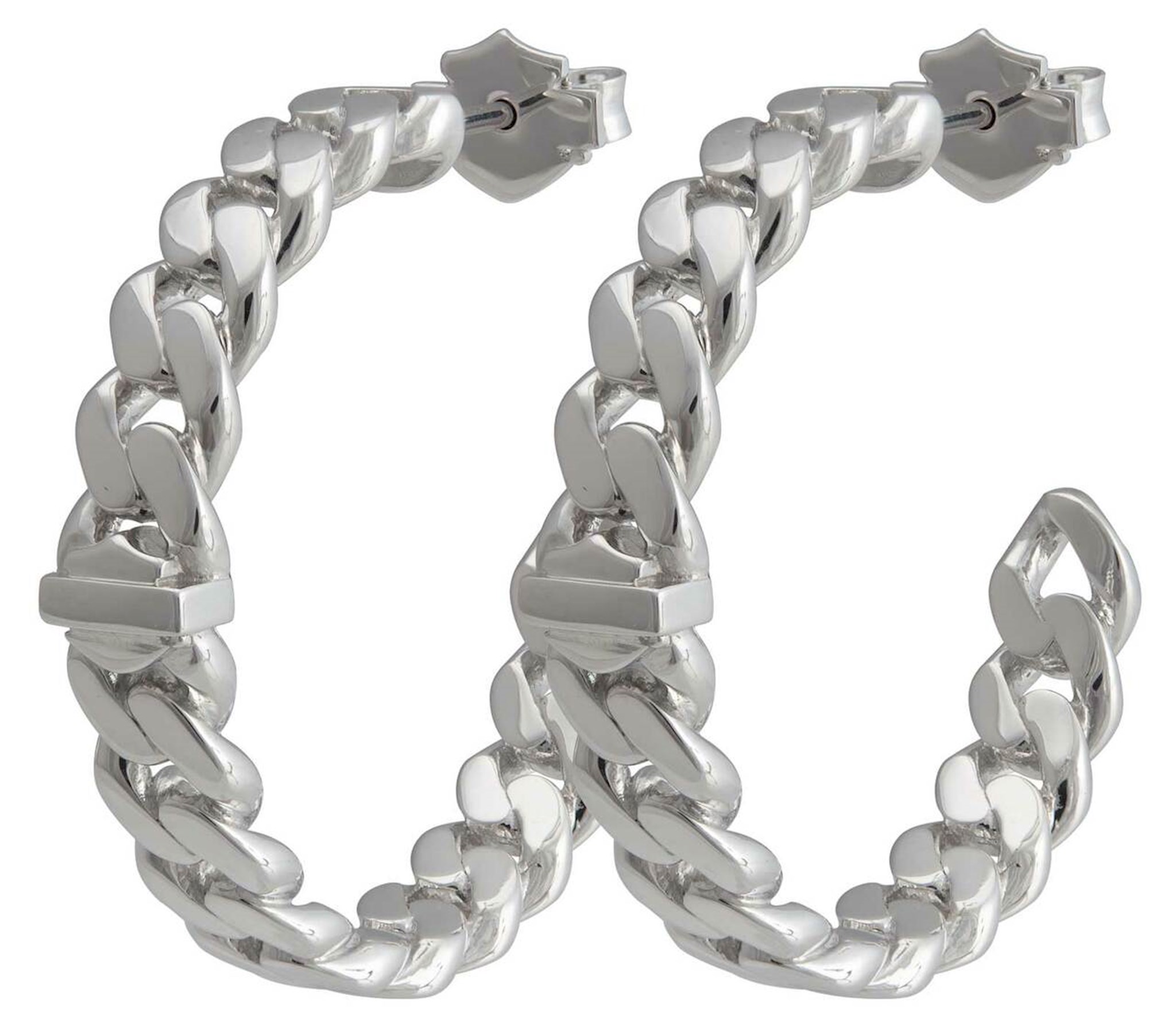 Harley-Davidson® Women's B&S Curb Link Hoop Earrings - Silver, HSE0016. Beautiful curb link chain design with an iconic Bar & Shield logo. Constructed from high-quality, durable stainless steel. It will not rust, tarnish or fade. Hoop earrings with secure butterfly back. These earrings are hand-crafted with the highest attention to detail and quality, utilizing the finest materials. Timeless and will never go out of style