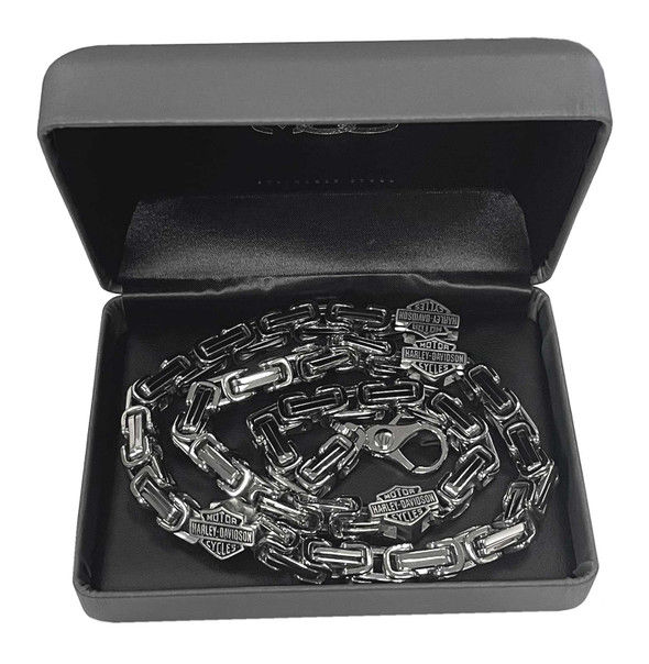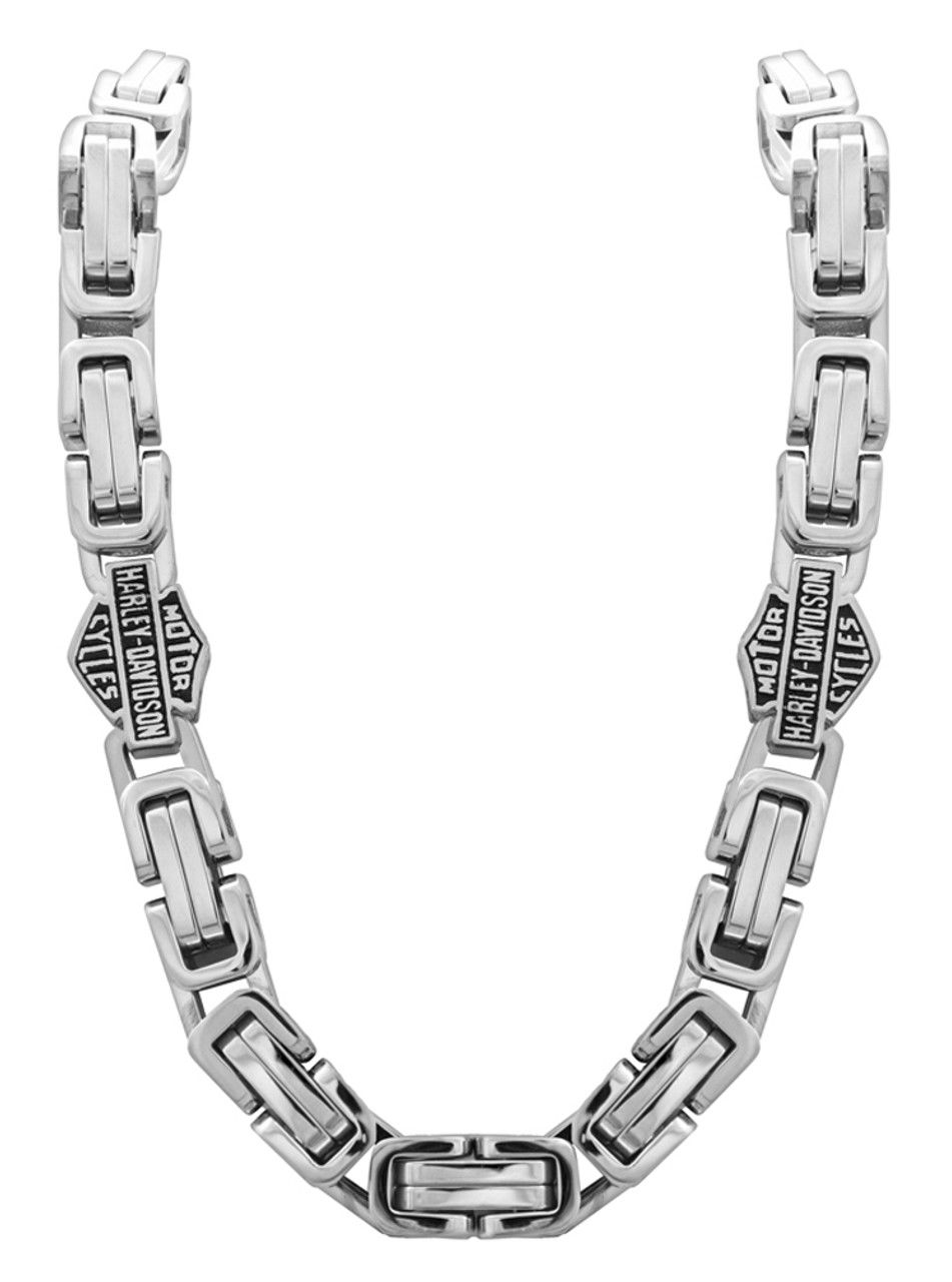 Harley-Davidson® Men's Double Link Necklace, HSN0026-22. Features an awesome double linked design decorated with Bar & Shield logos. Made of stainless steel. Size: 22'' necklace. Mod Jewelry is hand crafted with the highest attention to detail and quality, utilizing the finest materials.