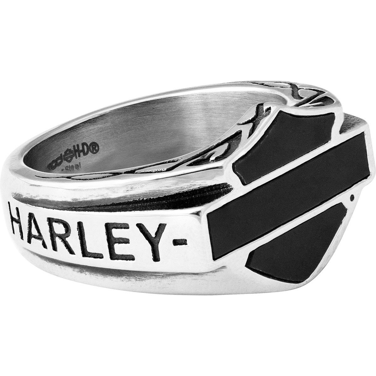 Original Harley-Davidson men´s Signet Ring. Small Black Celtic Enamel Bar & Shield. Stainless Steel.