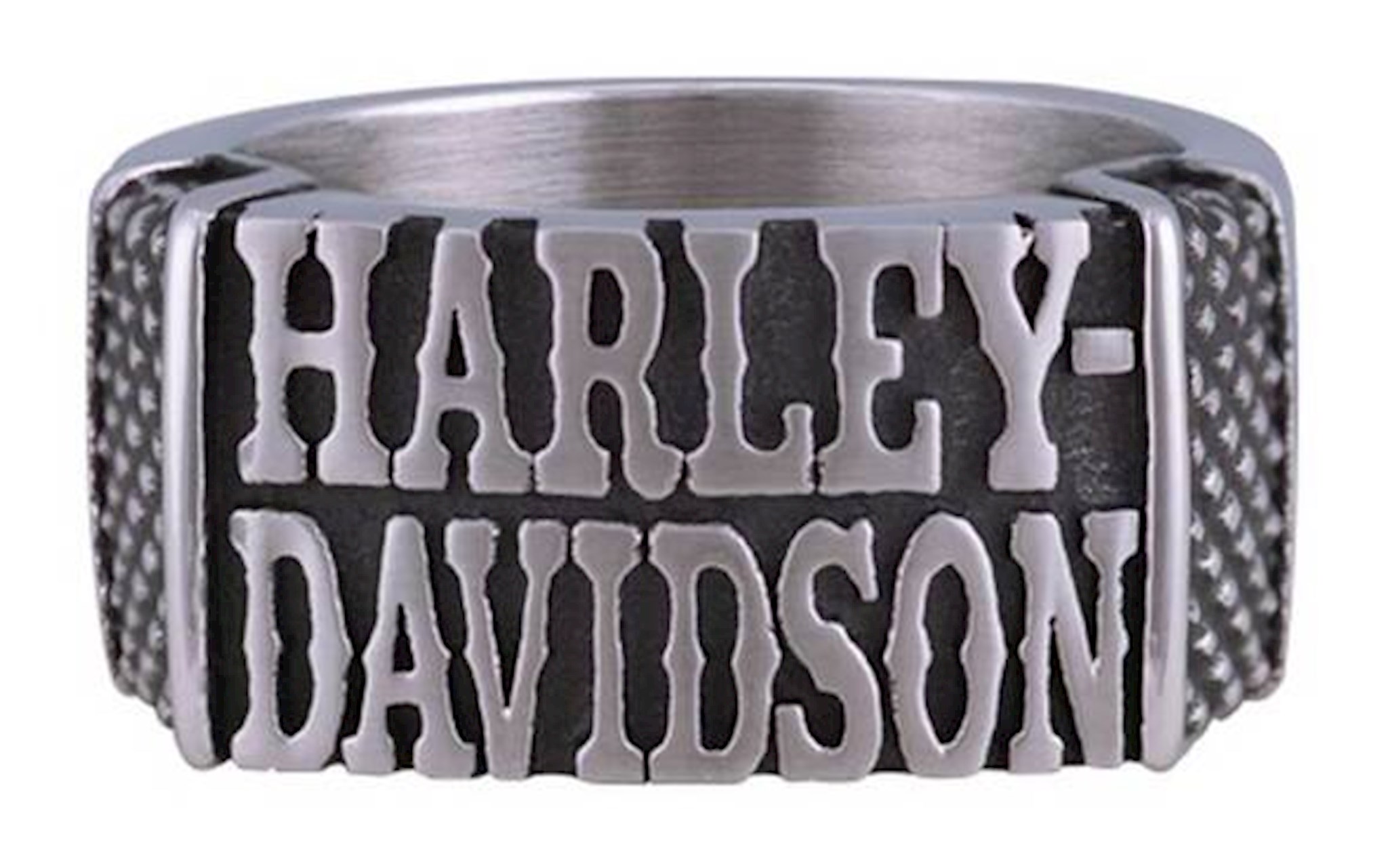 Harley-Davidson® Men's Western H-D Ring, HSR0073. Features awesome sculpted western style Harley-Davidson® script. Constructed from high quality antique silver stainless steel. Hand crafted with the highest attention to detail and quality.