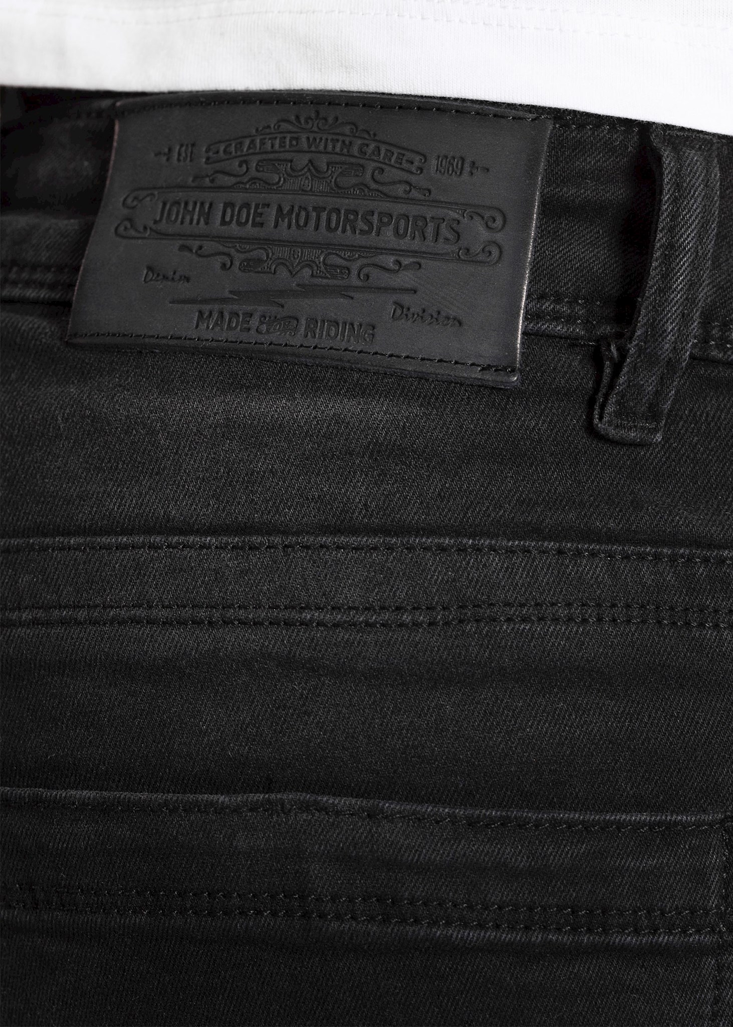 Original Jeans with XTM-Fiber®. Our John Doe Original Jeans with their perfectly tailored straight fit are the absolute classic in the John Doe clothing line. With a lining made from the worldwide innovation XTM-Fiber® (fiber technology made from aramid fiber / Coolmax® and Lycra®), they achieve the perfect balance between protection and ideal wearer comfort. Thin, extremely flexible, water-repellent, yet provide the wearer with optimal protection in the event of extreme conditions and crashes on every ride, whether in the city or on long trips. Built-in armor pockets at the knee (adjustable) and hip allow the wearer to add armor for additional protection. Worldwide innovation in motorcycle clothing - XTM-Fiber.