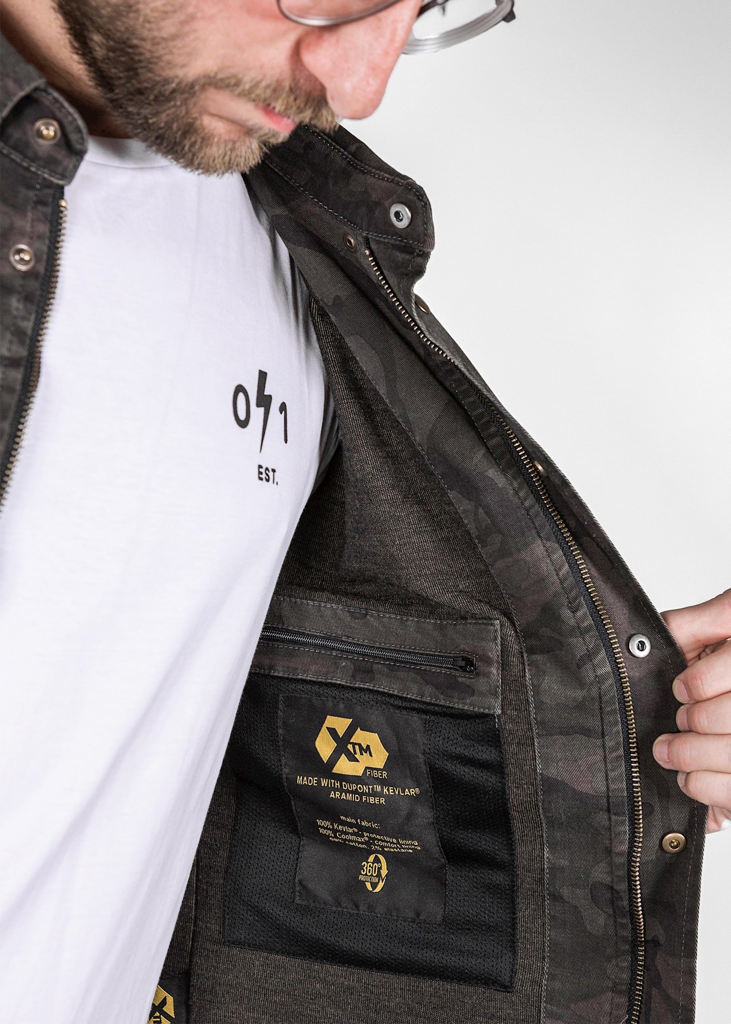 Material & Details: • 100% cotton twill outer. • XTM protective fiber: Crash side 100% DuPont™ Kevlar® aramid fiber / skin side 100% Coolmax®. • YKK zipper (2x). • Armor pockets on the back, shoulders and elbows. • Left & right inner pocket. • Left & right breast pocket. • JDC Wrench Tool Stick on the back. • JDC Air Ventilation System. • Regular/straight fit - comfort riding fit. • 2x adjustable cuff. • Longer at the front and back. • CE approved by TÜV Rheinland. Additional information: • Armor for shoulder and elbow included, armor for back sold separately