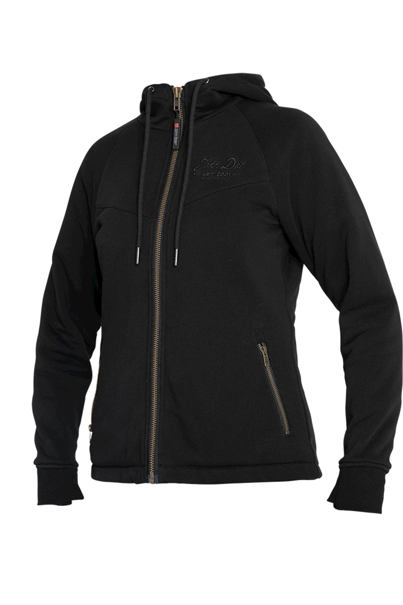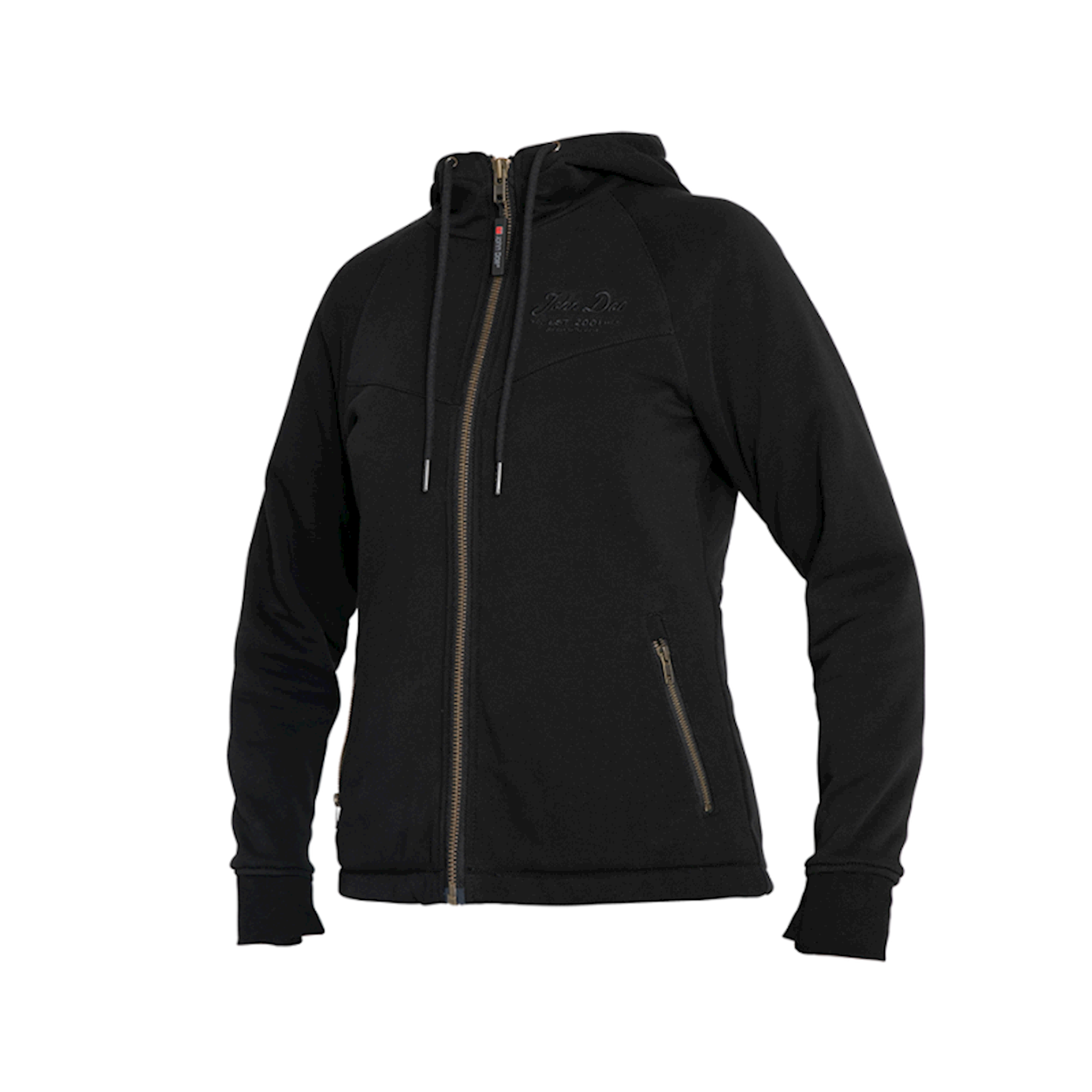Our XTM® Hoodie 2.0 has undergone a style update. What remains is our XTM® lining to protect you in any situation together with shoulder, elbow and back protectors as well as the new, lightweight outer fabric in cotton twill. XTM® Hoodie 2.0 Woman comes in a tapered fit with stretch fabric for an extremely comfortable wearing experience. The back is somewhat longer, protecting the kidneys from the wind.