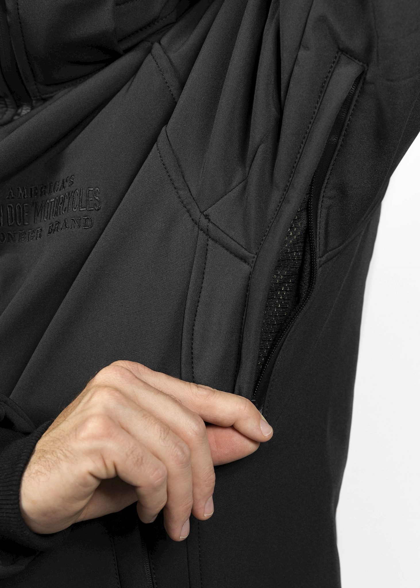 Softshell Jacket with XTM-Fiber® This softshell membrane jacket provides an excellent balance between 100% waterproofing, breathability, thermal protection and safety when riding. With a lining made from the worldwide innovation XTM-Fiber® (fiber technology made from DuPont™ Kevlar® / Coolmax® and Lycra®), it achieves the perfect balance between protection and ideal wearer comfort. Thin, extremely flexible, water-repellent, yet provides the wearer with optimal protection in the event of extreme conditions and crashes on every ride, whether in the city or on long trips. Numerous inner zipper pockets make it easy to store your essentials while riding. The 5-point armor system (shoulders, elbows and back) provides ideal protection against injuries in crucial areas.
