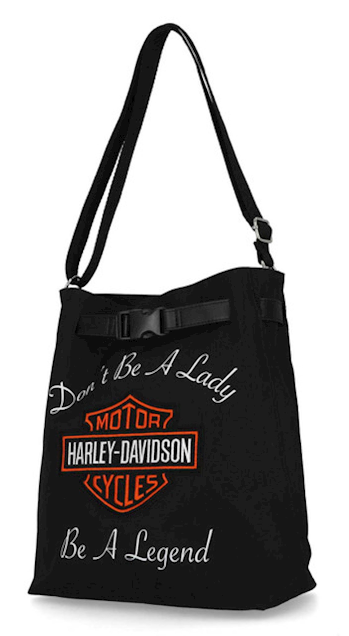 Harley-Davidson® Women's Hobo Purse - Black, MHW140/08. Brushed nickel finish. Made from high-quality polyester. Interior front slip pocket and interior back zipper pocket. Classic Bar & Shield logo patch on front. Adjustable shoulder strap. Size: 11" x 13.5" x 5".