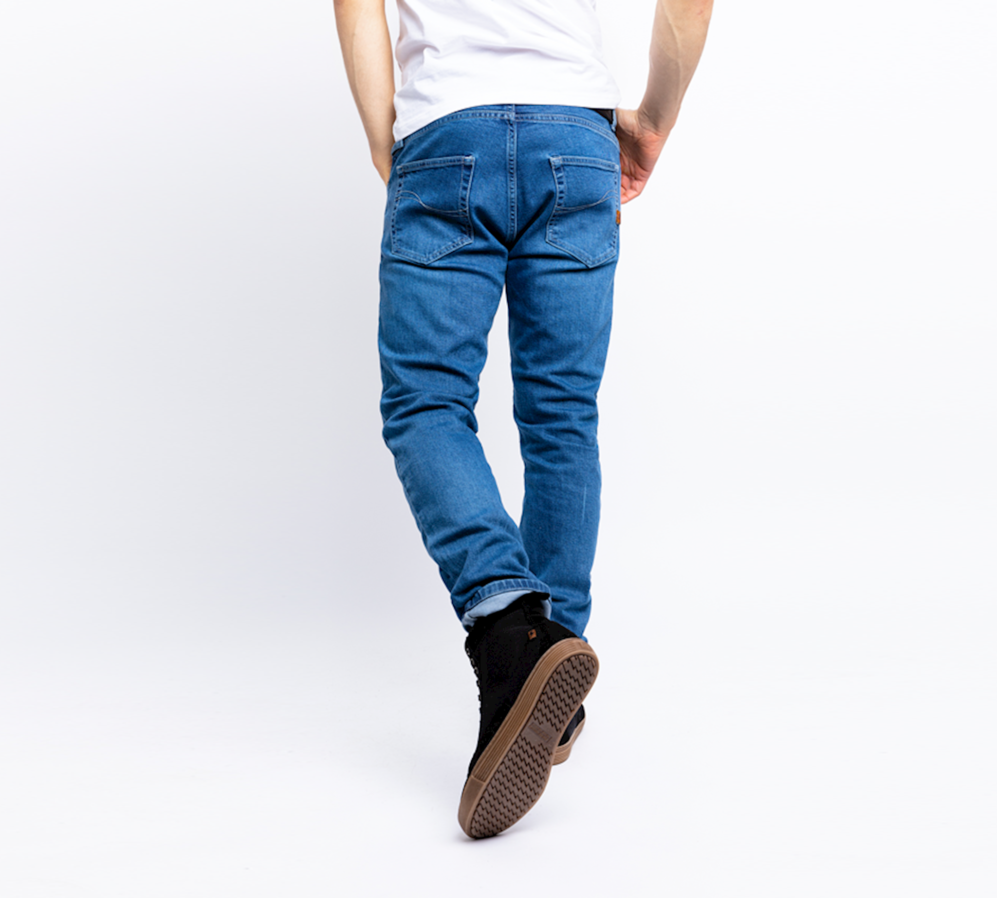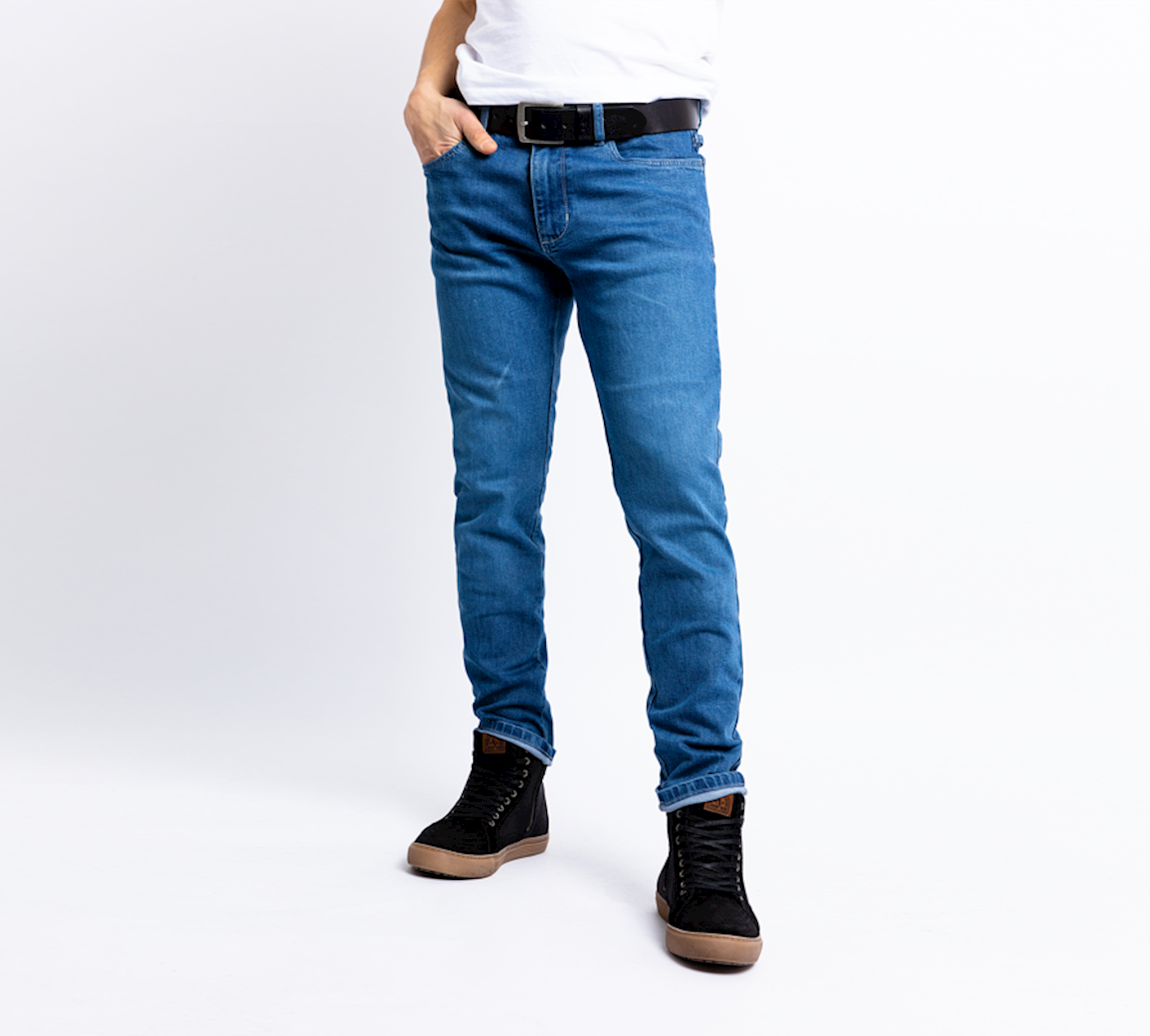 CE certification: AAA (EN17092-2:2020). Monolayer design XTM-Fiber® and stretch denim twill blend XTM protector-ready Integrated height-adjustable knee protector pockets. Integrated hip protector pockets Level 1 knee and hip protectors included. Water-repellent and breathable. Multistretch comfort. Five-pocket denim style. Strap for gloves and keys. YKK zipper. Slim-Fit/close-fitting leg.