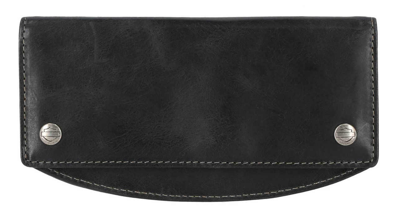 arley-Davidson® Men's Smooth Grain Snap Flap Pocket Long Biker Wallet - Black