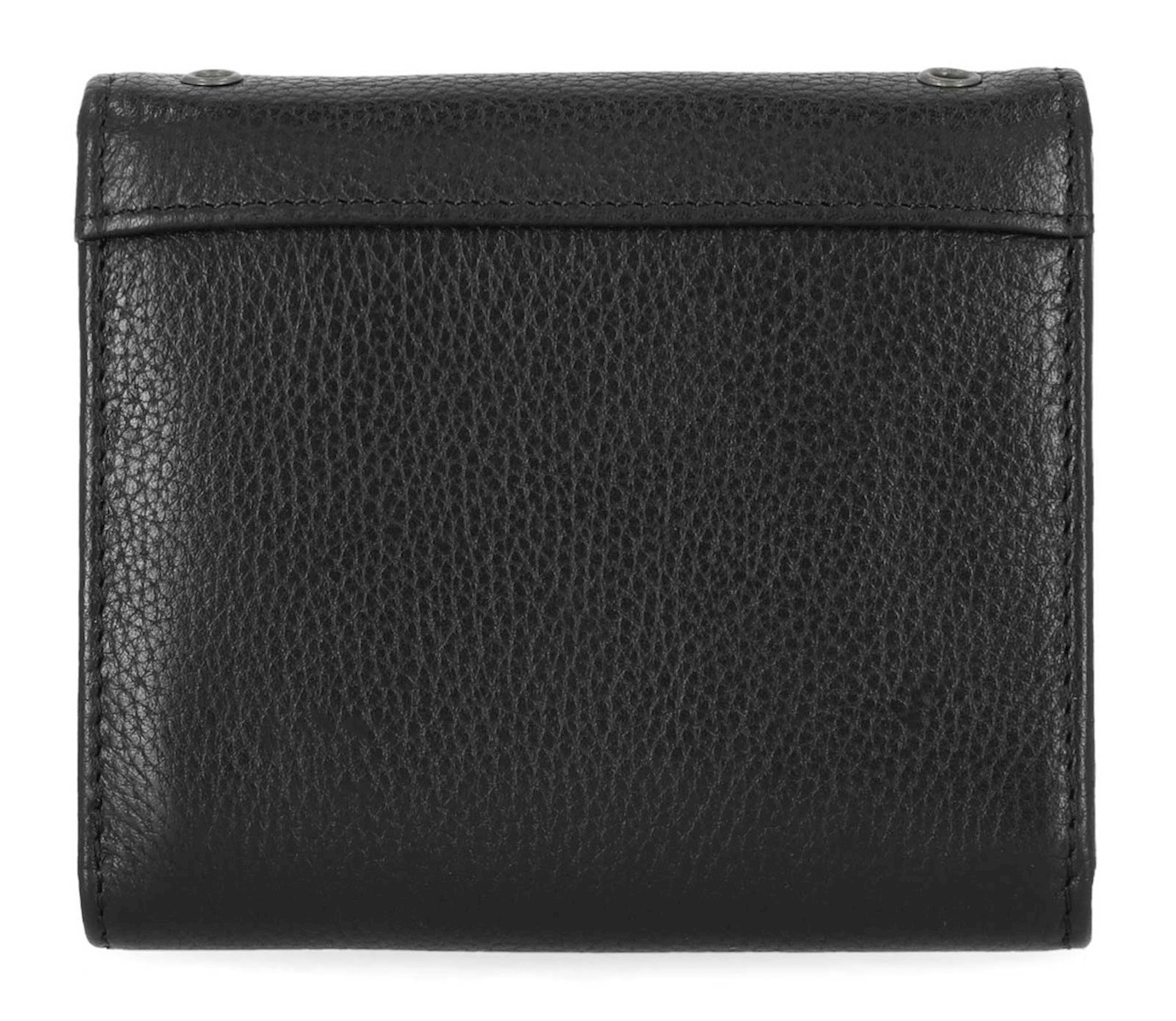Harley-Davidson® Women's Eyelet Indexer Wallet, Black MWW053/08. Crafted for both style and security, this genuine leather wallet features a sleek gunmetal finish and an embossed B&S logo for a touch of sophistication. Engineered with RFID protection, it safeguards your cards against electronic theft. Interior features six credit card slots, zipper pocket and slip pocket. Compact yet functional, this wallet is the perfect everyday carry for the modern professional. Size: 4.5" x 3.8".