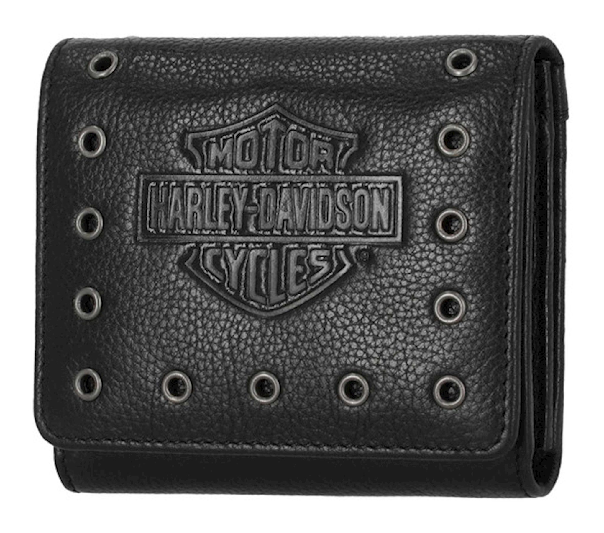 Harley-Davidson® Women's Eyelet Bar & Shield Logo Leather Indexer Wallet, Black