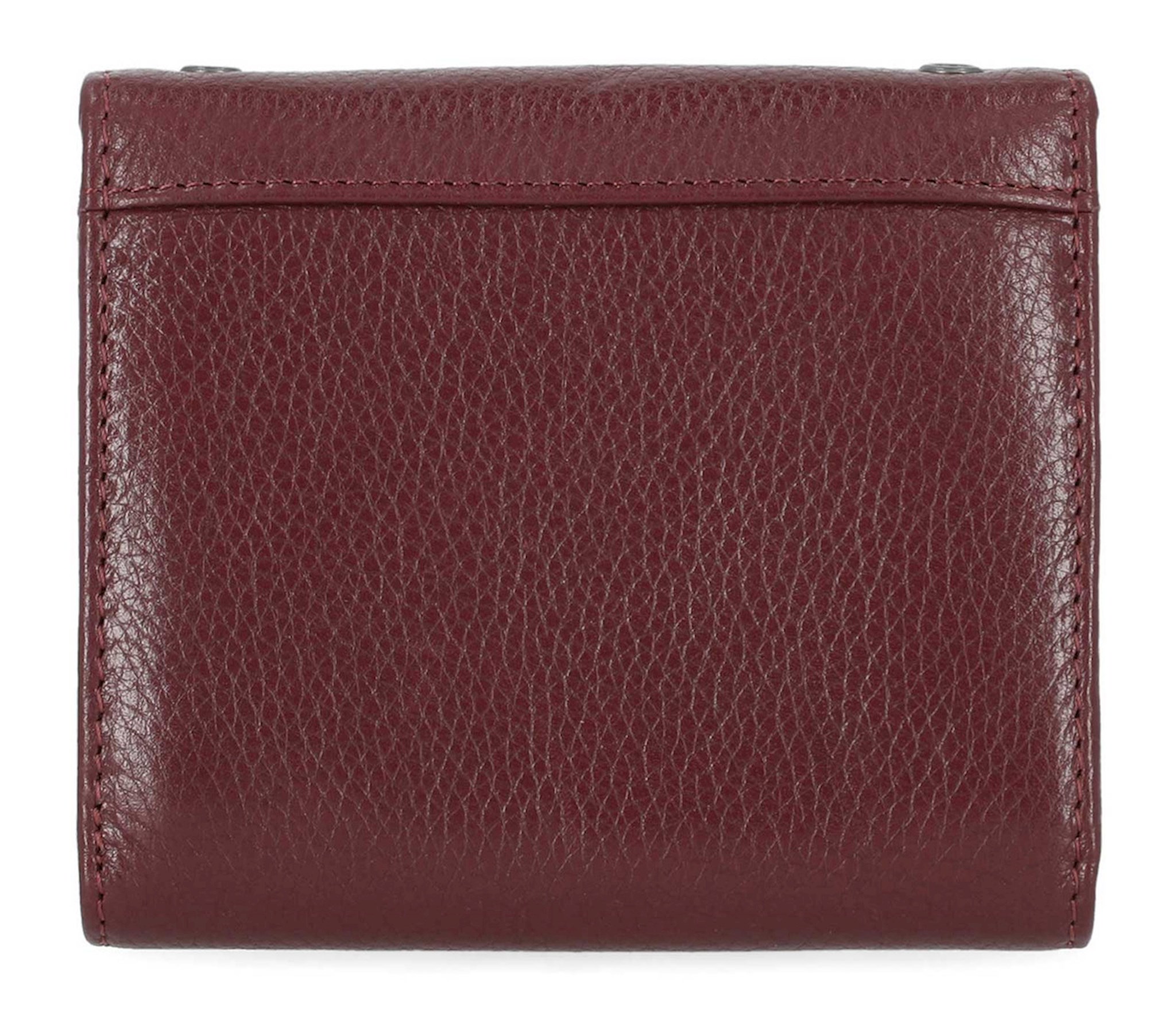 Harley-Davidson® Women's Eyelet Indexer Wallet, Oxblood Red MWW053/20. Crafted for both style and security, this genuine leather wallet features a sleek gunmetal finish and an embossed B&S logo for a touch of sophistication. Engineered with RFID protection, it safeguards your cards against electronic theft. Interior features six credit card slots, zipper pocket and slip pocket. Compact yet functional, this wallet is the perfect everyday carry for the modern professional. Size: 4.5" x 3.8".