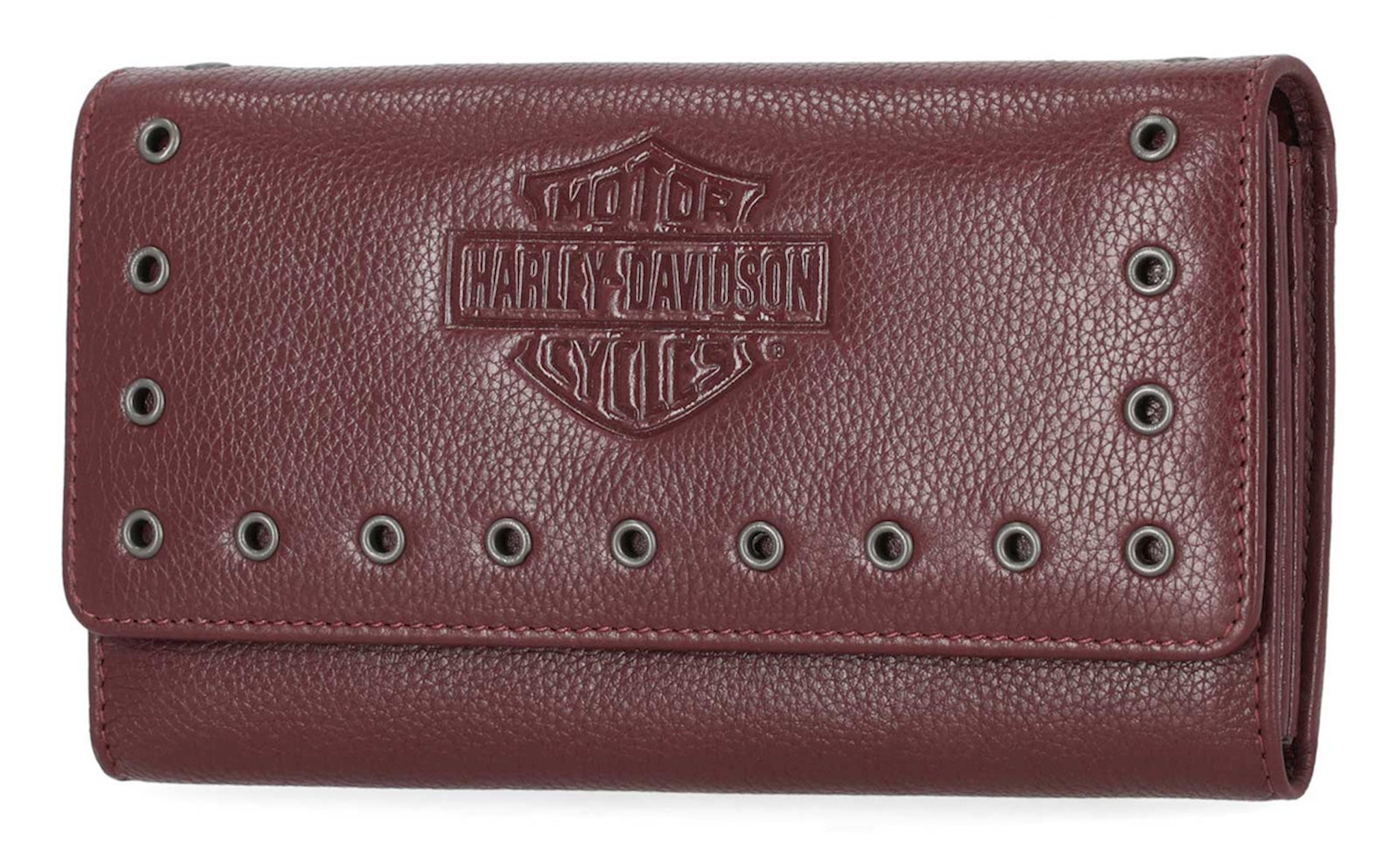 Harley-Davidson® Women's Eyelet Bar & Shield Logo Leather Clutch Wallet, Oxblood Red