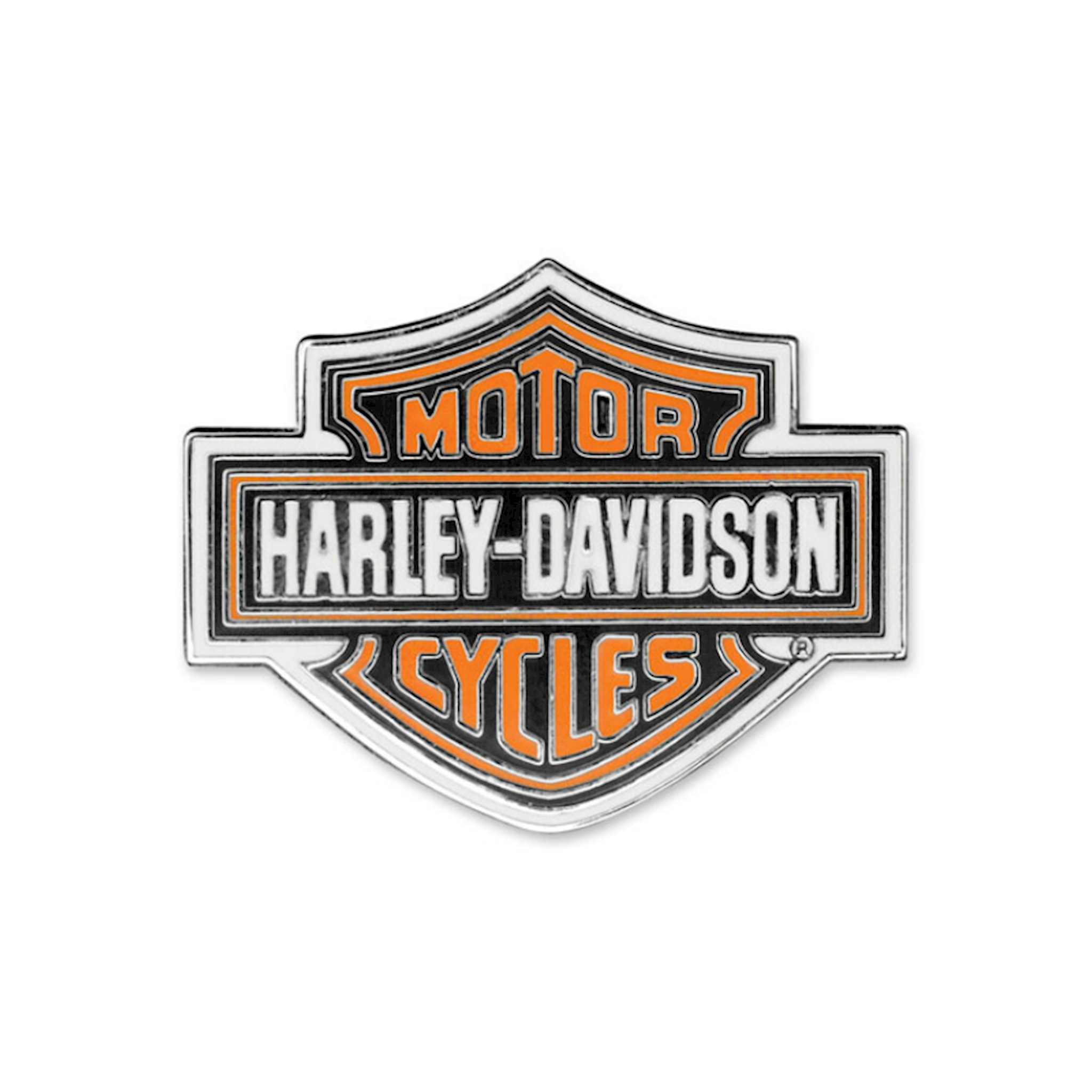 Harley-Davidson® Orange Bar & Shield Silver Pin