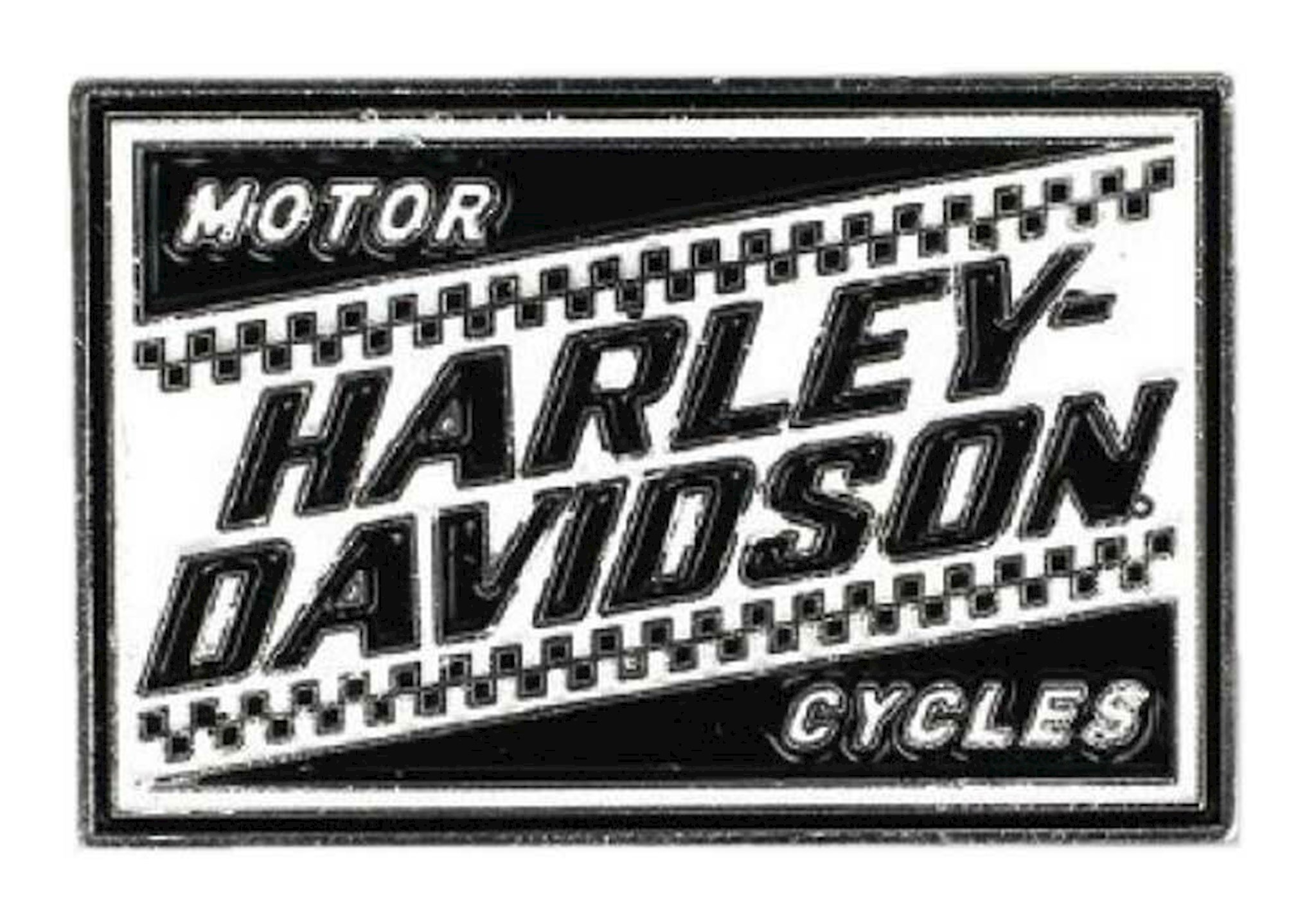 Harley-Davidson® 2D Die Cast Ignition Pin, P334882. Awesome custom Harley-Davidson® script. 2D Die Cast with enamel fill. Silver plating. Heavy relief two flat head pin backs.