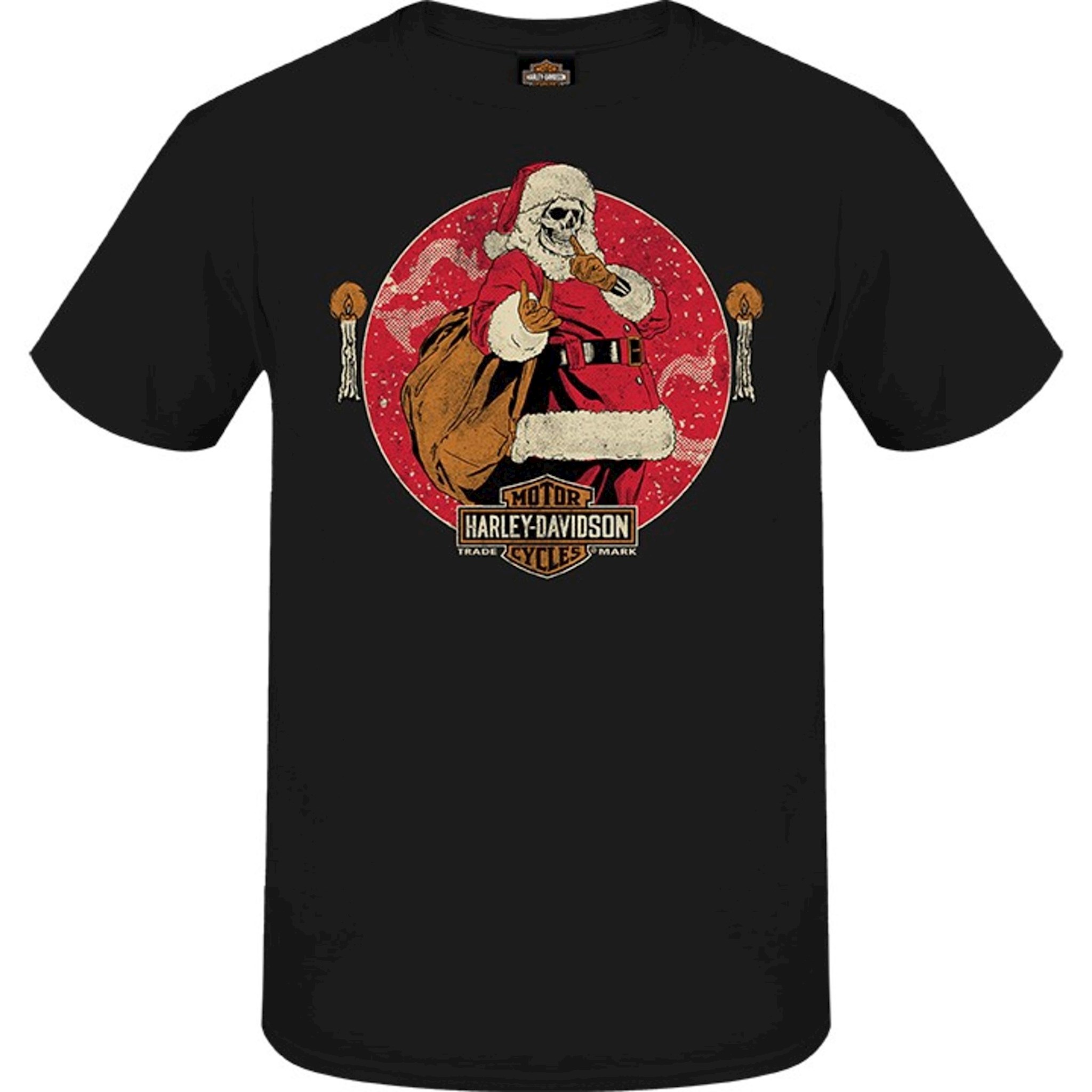 Motor Saloon Harley-Davidson Dealer Shirt Black Dealer T-Shirt with Harley-Davidson and Santa Claus Design On the back is the individual back print of Motor Saloon Harley-Davidson. Material: 100% cotton