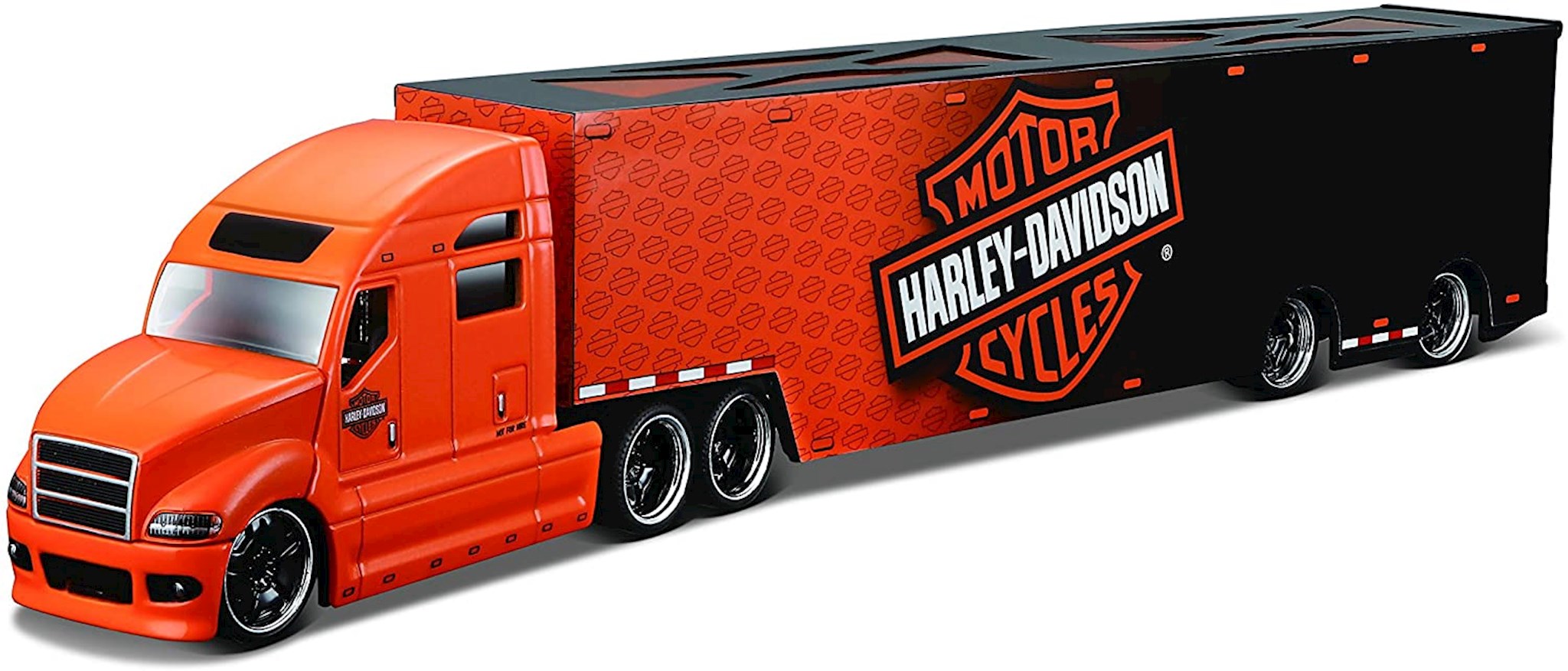 Harley-Davidson® Custom Hauler Trailer Maisto 1:64. True-to-scale detail. Rubber Tires & Detailed exterior. Made of die cast with some plastic parts. 3 Years and above. No Battery Required.