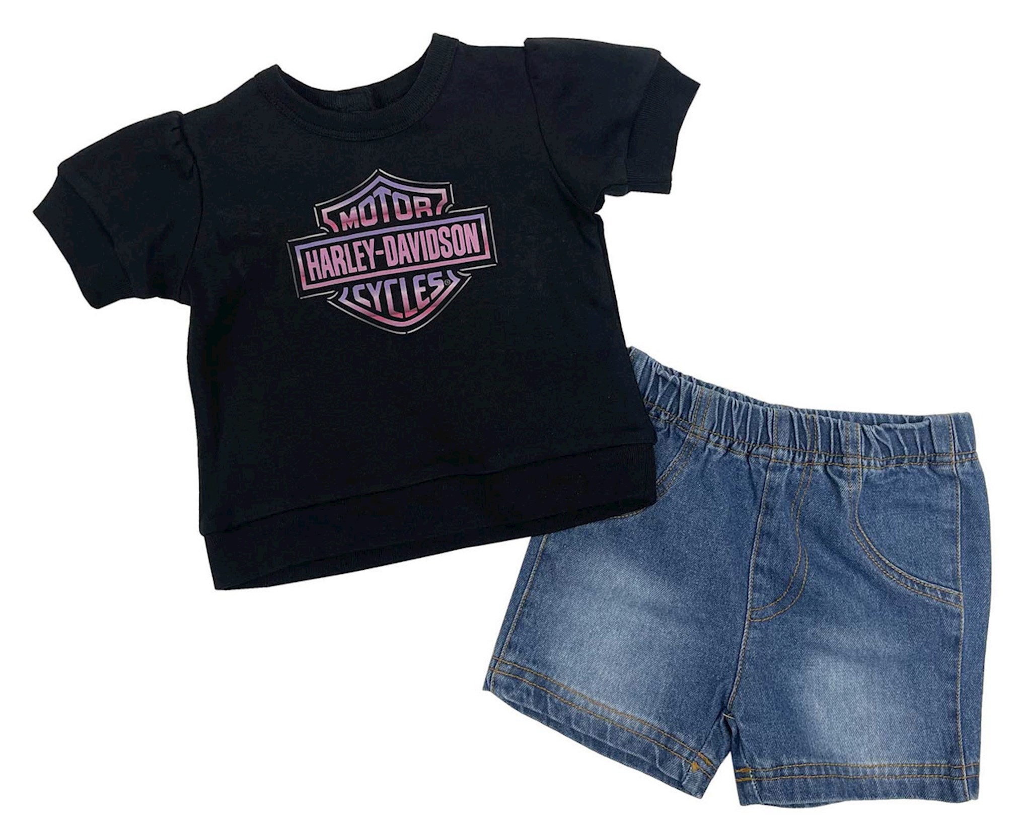 - Harley-Davidson® Little Girls' 2 Piece Knit Pullover & Denim Shorts Toddler Set (6-9M) - € 69,96