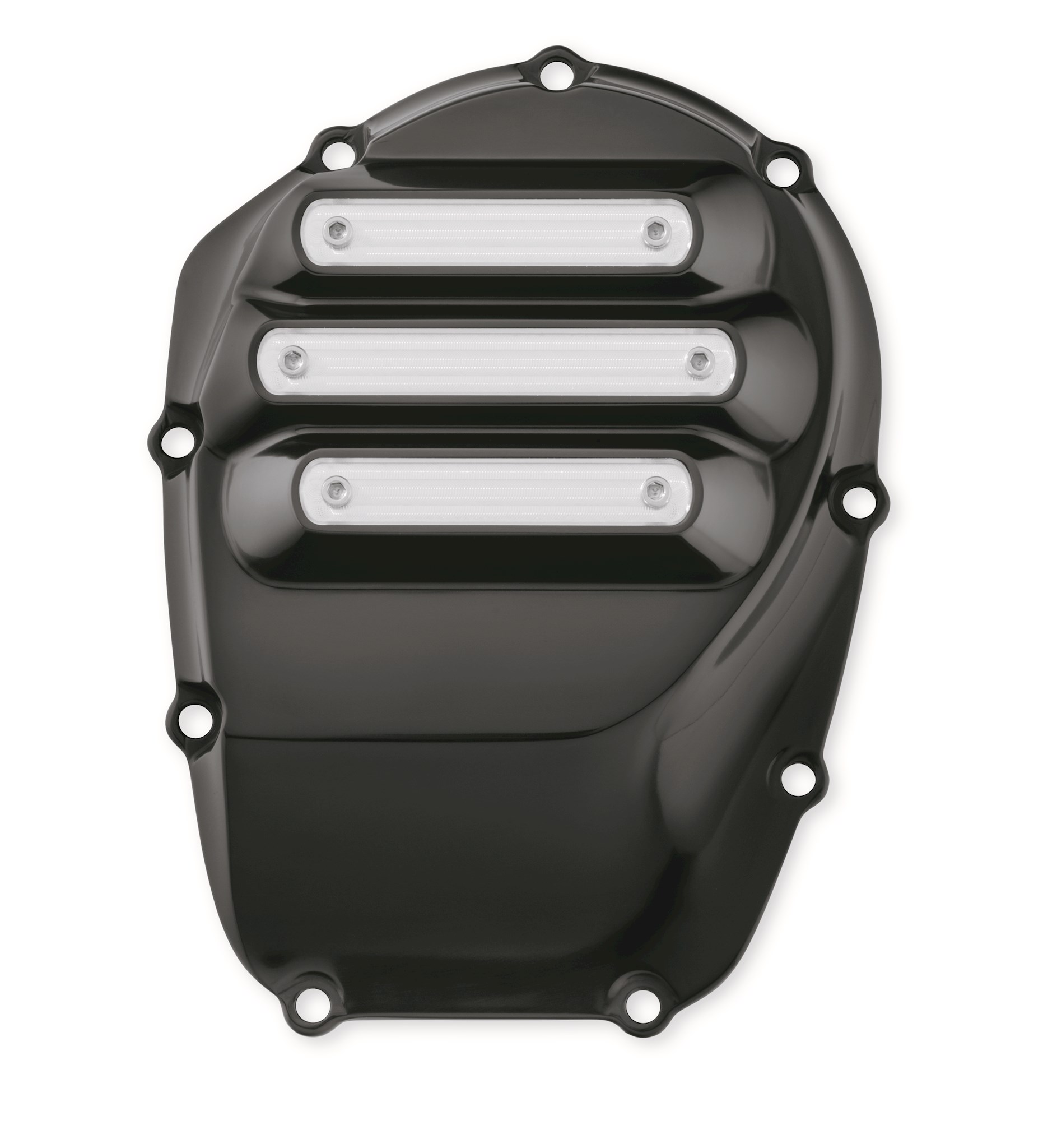 Express your bold, renegade attitude. This complete collection of engine covers lets you set your own styling direction. Crafted from aluminum, the Dominion™ Collection features a gloss black anodized finish with achined, raw aluminum surfaces. These surfaces can be left exposed or, they come ready to be filled with interchangeable brushed black, bronze powder-coated or brushed orange anodized inserts (sold separately) that allow you to create your own look. Socket head cap screws are included for added style.