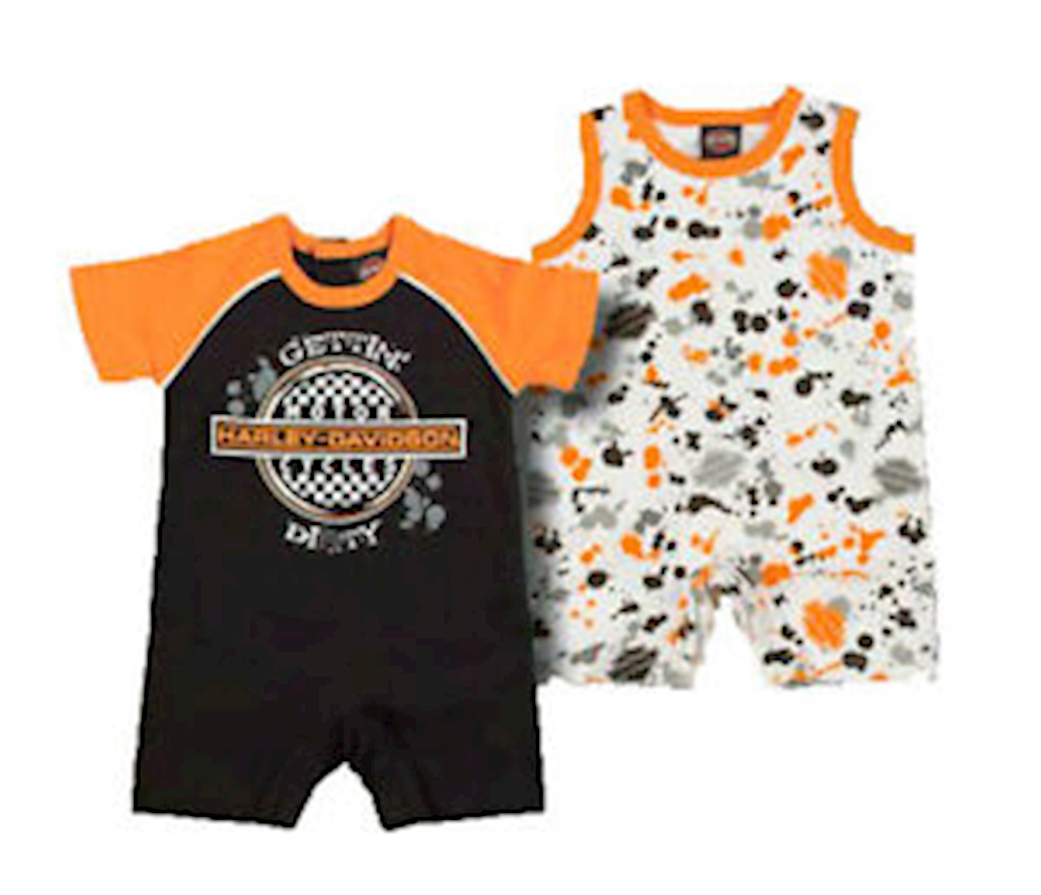 Harley-Davidson® Infant Boys' 2-Pack Romper Set. One short sleeves, one sleeveless.