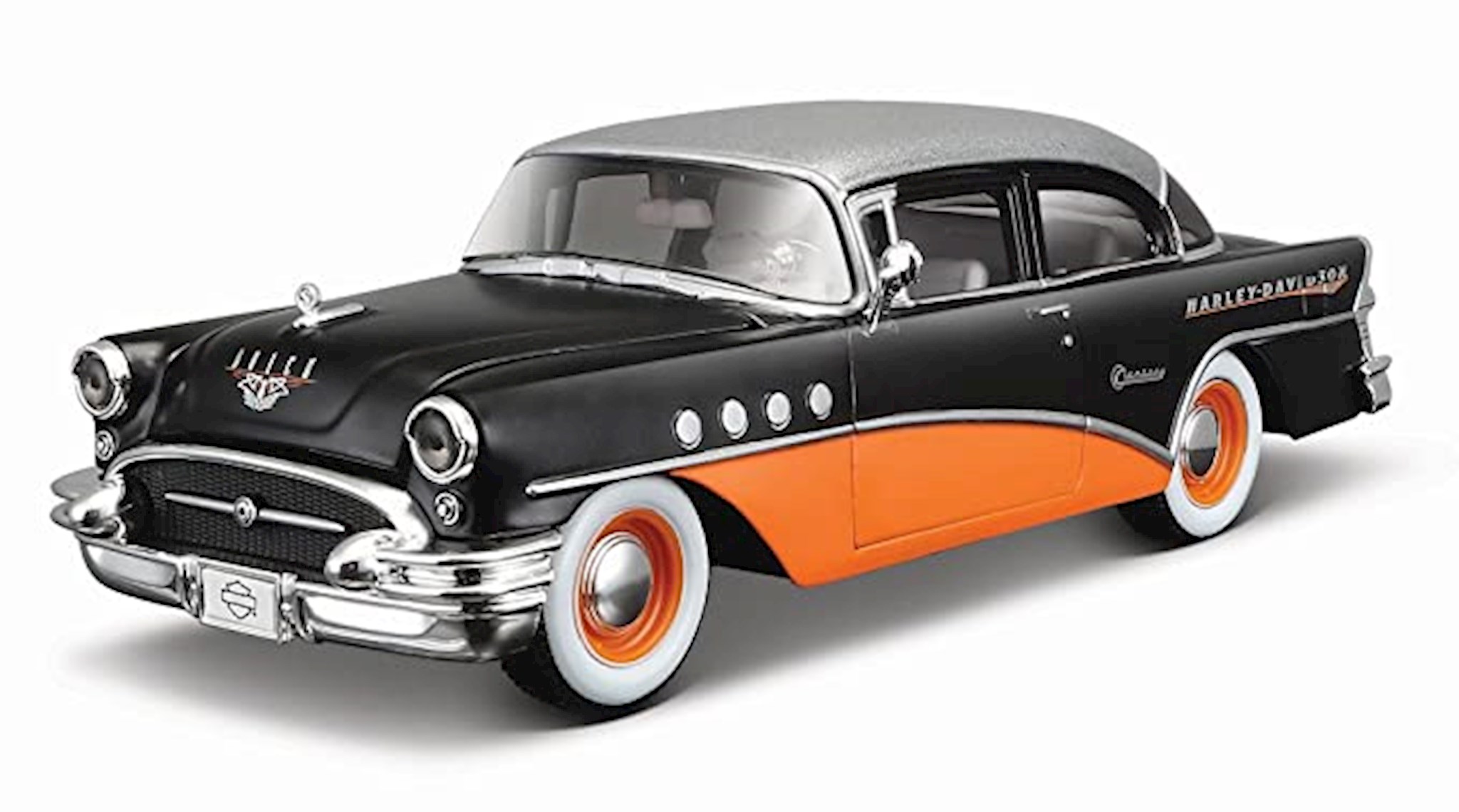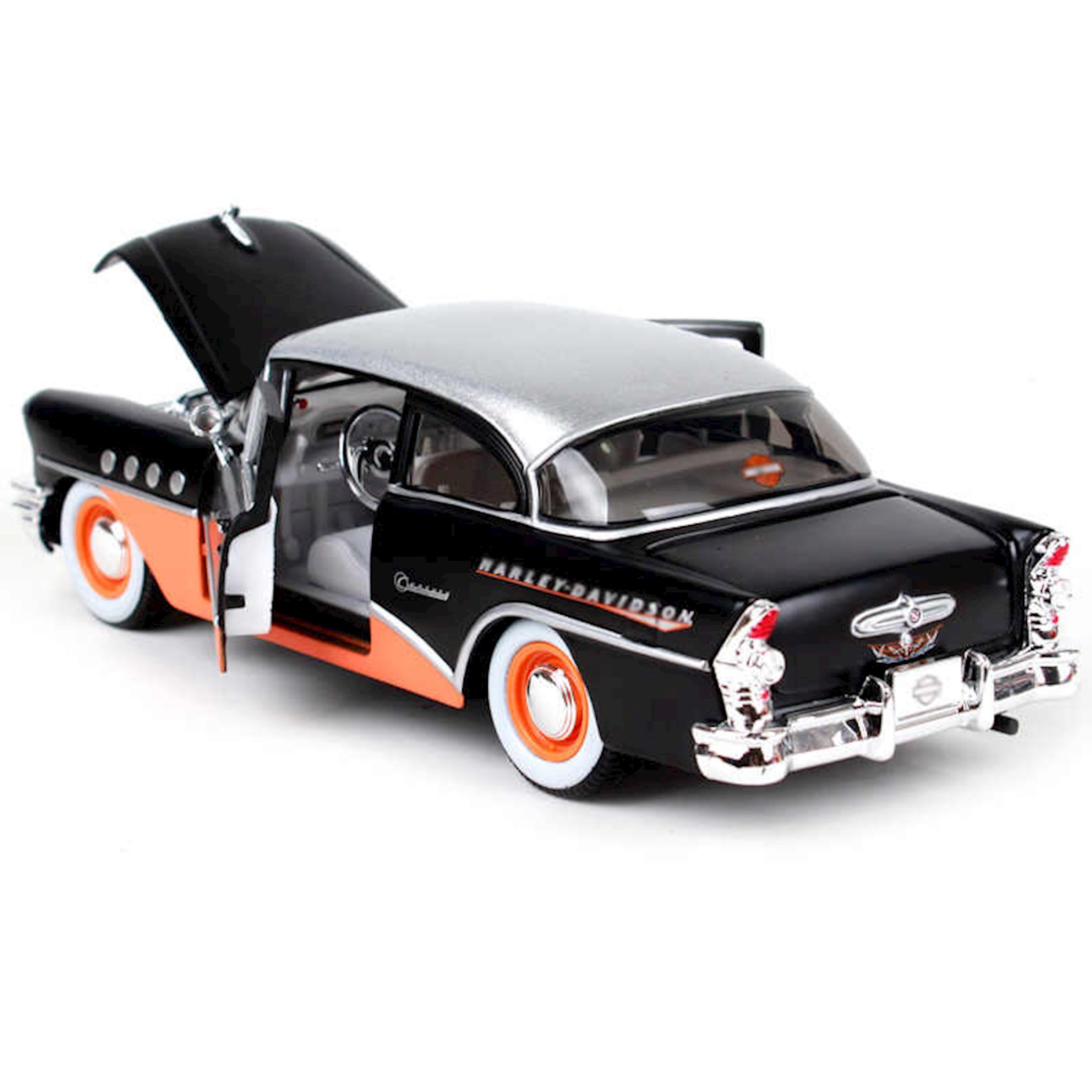 Harley-Davidson® Buick Century 1955 Maisto 1:26. True-to-scale detail. Rubber Tires & Detailed exterior. Doors and hood kan be opened. Made of die cast with some plastic parts. 8 Years and above. No Battery Required.