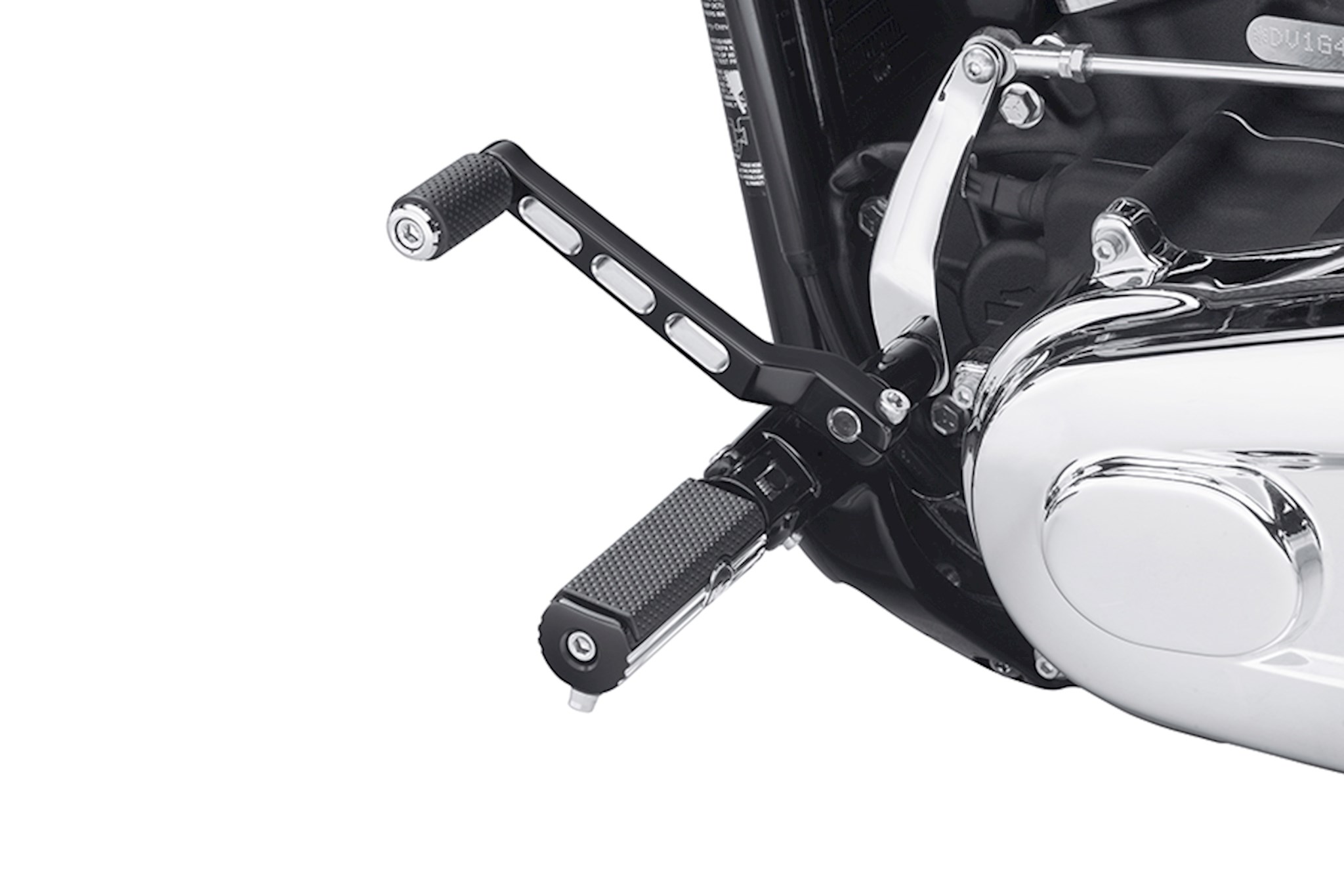 Forged from aluminum, these Billet Style Shift Levers are machined and polished for a beautiful, custom look. Available in your choice of mirror chrome, satin black powder coat or edge cut black anodized and machined aluminum finishes. Includes chrome hardware. Shifter pegs sold separately. Fits '18-later FXFB, FXFBS, FXBR and FXBRS models equipped with forward controls and '18-later FLDE, FLFB, FLFBC, FLHC, FLHCS and FLSL models equipped with footboards.
