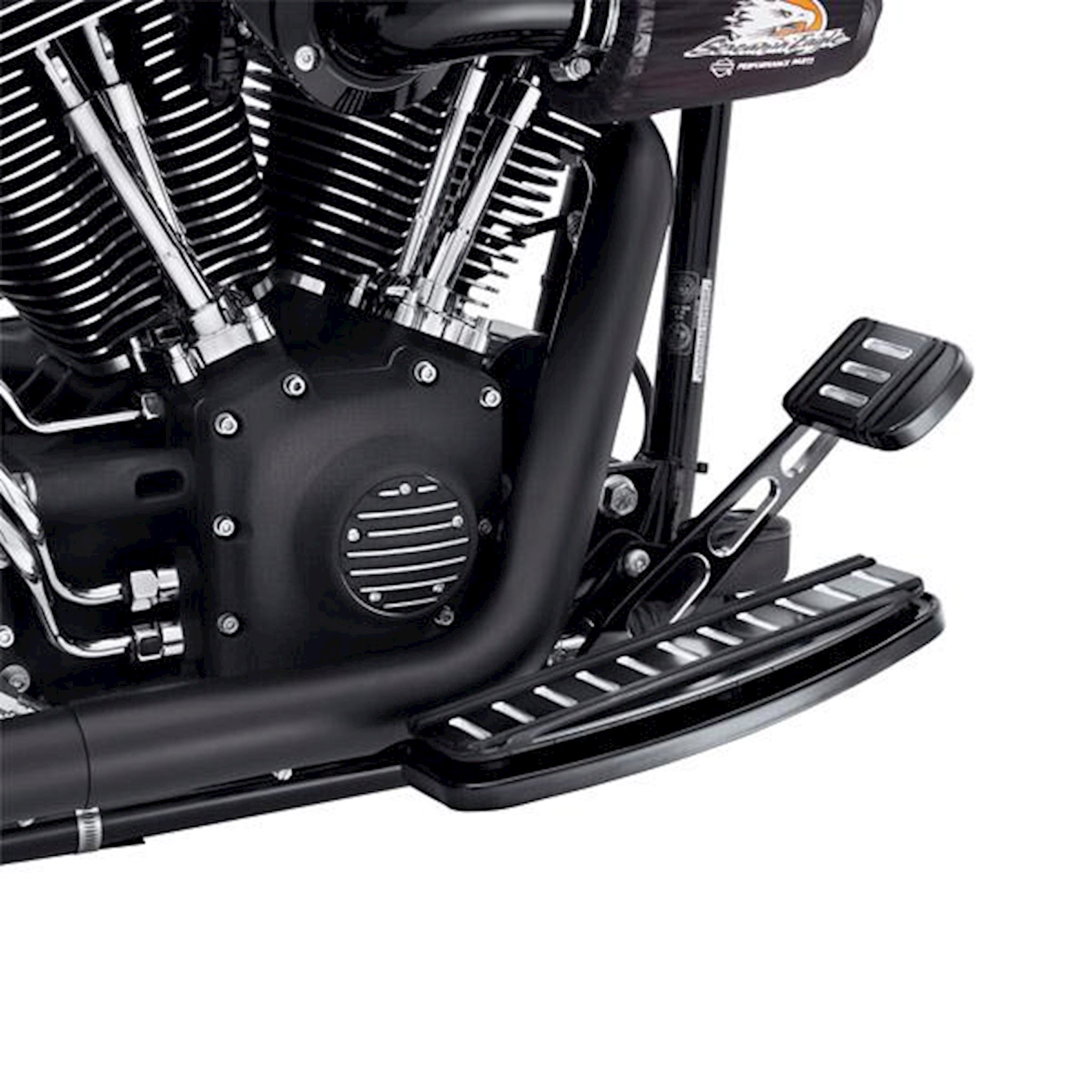 Styled to complement our billet style mirror stems and shift levers, these Billet Style Rear Brake Levers are forged from billet aluminum, then machined and polished for a beautiful, custom look. Available in your choice of mirror chrome, satin black powder coat or edge cut black anodized and machined aluminum finishes. Lever matches the length of the Original Equipment extended length lever found on late-model FL Softail motorcycles. Brake pedal pads sold separately. Fits '00-later FL Softail models. Will not fit with Rear Master Cylinder Cover P/N 41815-00.