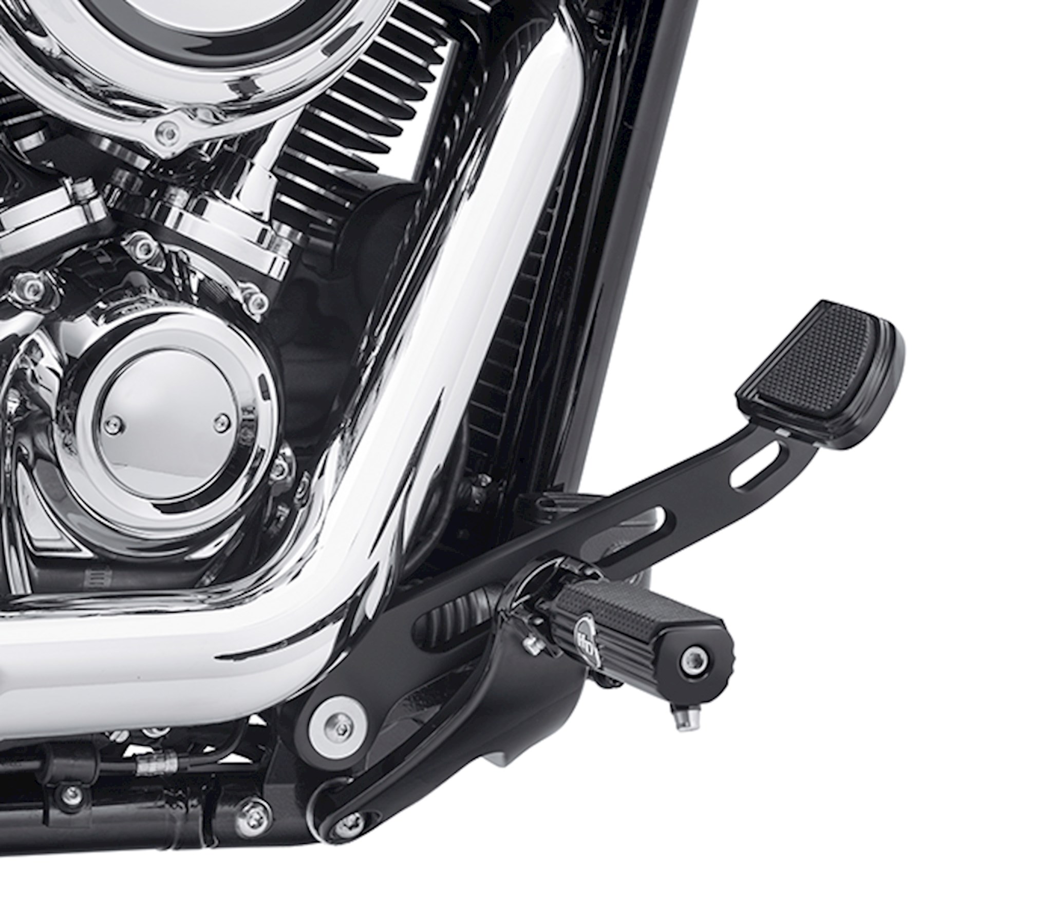Styled to complement our billet style mirror stems and hand and foot controls, these slotted Rear Brake Levers are forged from aluminum, then machined and polished for a beautiful, custom look. Available in your choice of mirror chrome, satin black powder coat or edge cut black anodized and machined aluminum finishes. Brake pedal pads sold separately. Fits '18-later Softail models equipped with forward controls.