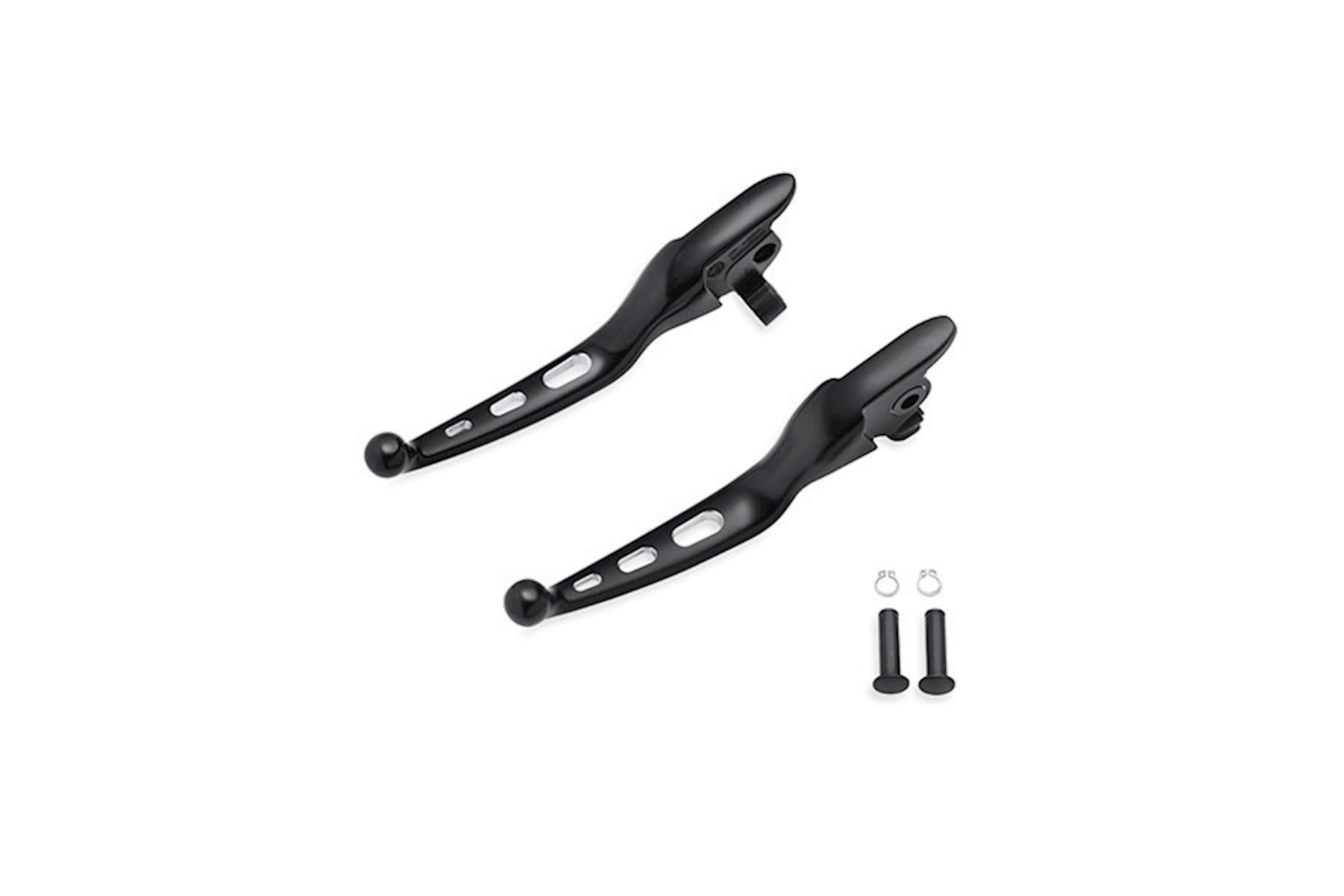 Continue the custom theme with accessory Hand Control Levers. Cast from aluminum, these levers feature a custom finish designed to match accessory chrome hand controls or complement Original Equipment-style black components. Clutch anti-rattle clip and new pivot bushing included. Fits '17-later Touring models. Does not fit Trike models.