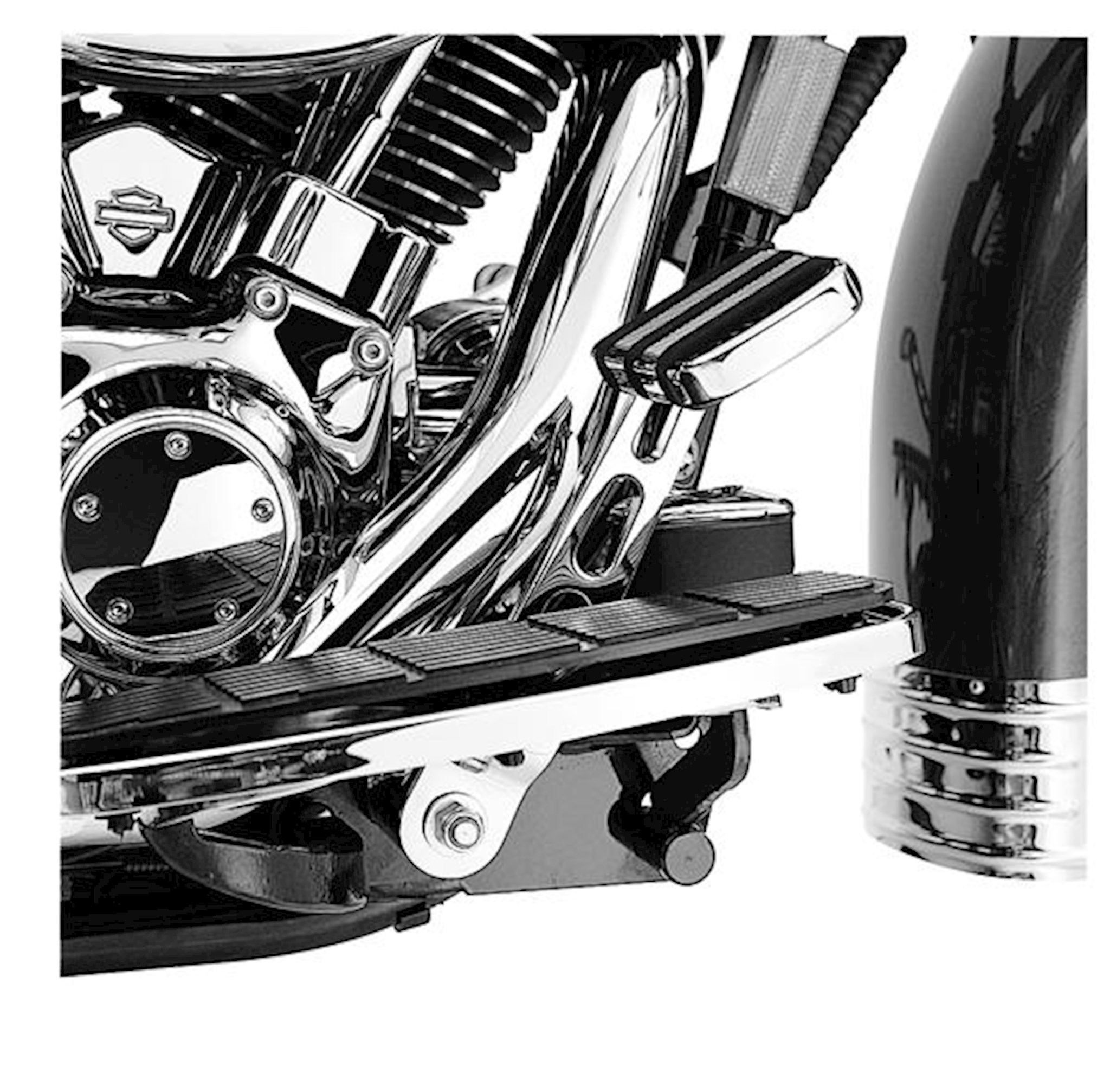 Styled to complement our billet style mirror stems and shift levers, these Billet Style Rear Brake Levers are forged from billet aluminum, then machined and polished for a beautiful, custom look. Available in your choice of mirror chrome, satin black powder coat or edge cut black anodized and machined aluminum finishes. Lever matches the length of the Original Equipment extended length lever found on late-model FL Softail motorcycles. Brake pedal pads sold separately. Fits '87-'99 FLSTC, FLSTS, FLSTF and FLSTN models and '97-'07 Touring models.