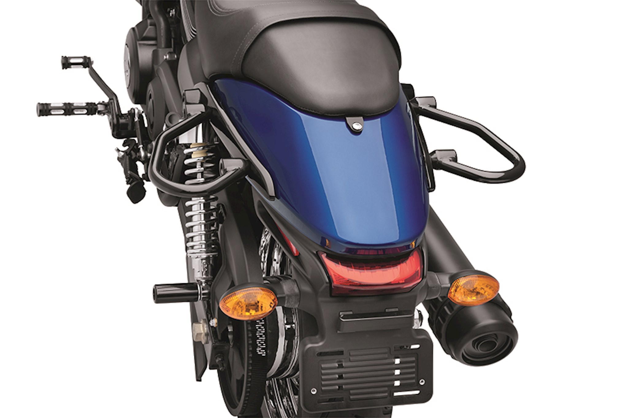 Soft asphalt, tight quarters, and inattentive car parkers are everyday threats to a motorcycle in the urban jungle. Stationary and low-speed tip-over incidents can cause significant damage to the bike’s painted parts, hand and foot controls, and the exhaust system. Now, you can provide cosmetic protection to some of the most costly components in the event of a vehicle drop, and safeguard your bike with this collection of cosmetic vehicle guards. Designed to protect the cosmetics of the rear fender, rear turn signals, and shocks, these gloss black rails bolt to the rear fender struts and offer a protective landing point during a right- or left-hand tip-over. The shape also provides a convenient lifting handle to help stand the bike upright after a drop.