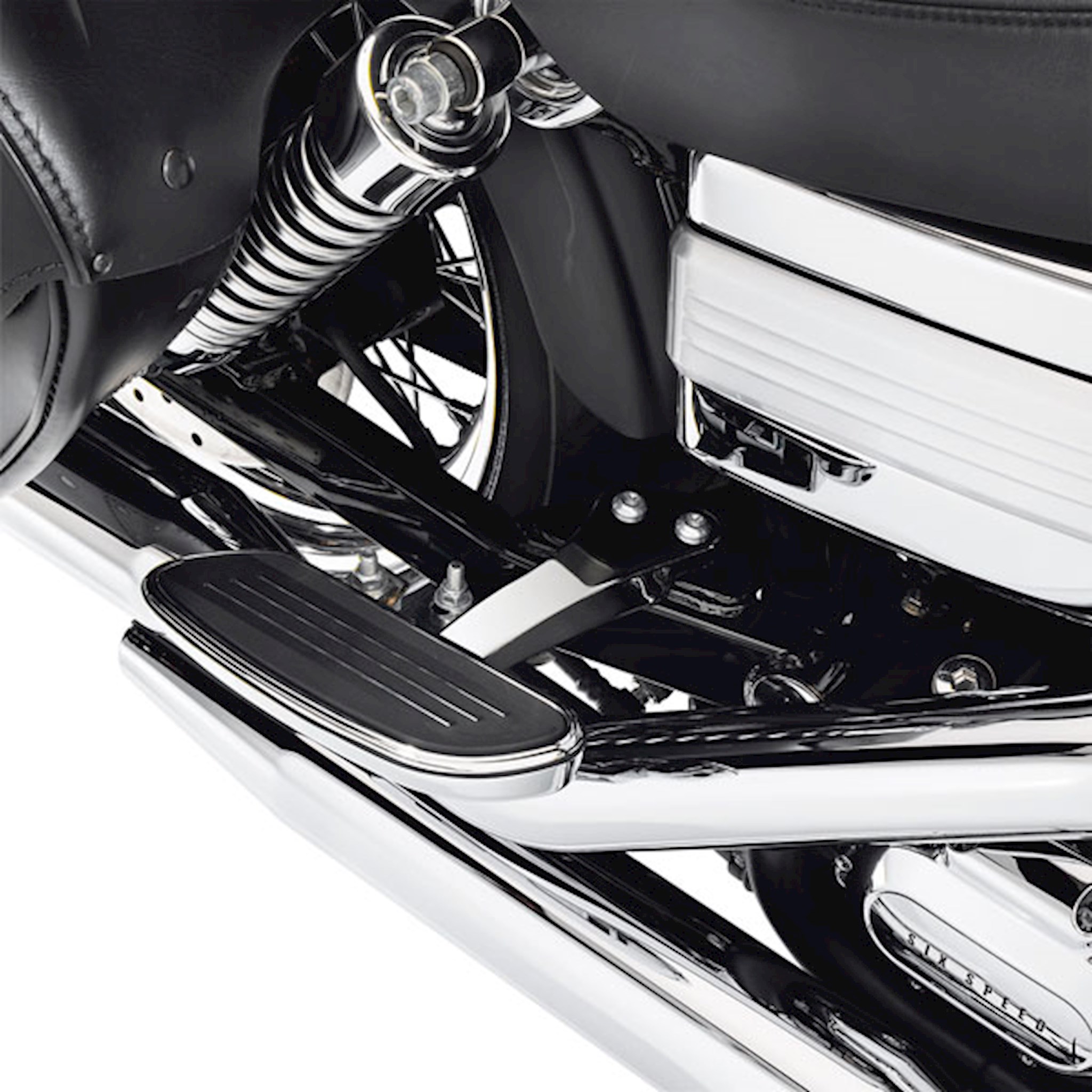 Add the comfort and convenience of passenger footboards to your Dyna motorcycle. This Support Kit is designed to allow installation of Traditional D-Shaped, Swept Wing, Tapered or Old-Style Passenger Footboards (sold separately) on Dyna models. Kit includes left and right supports, footboard mount hinge pins and installation hardware. Fits '06-later Dyna models.