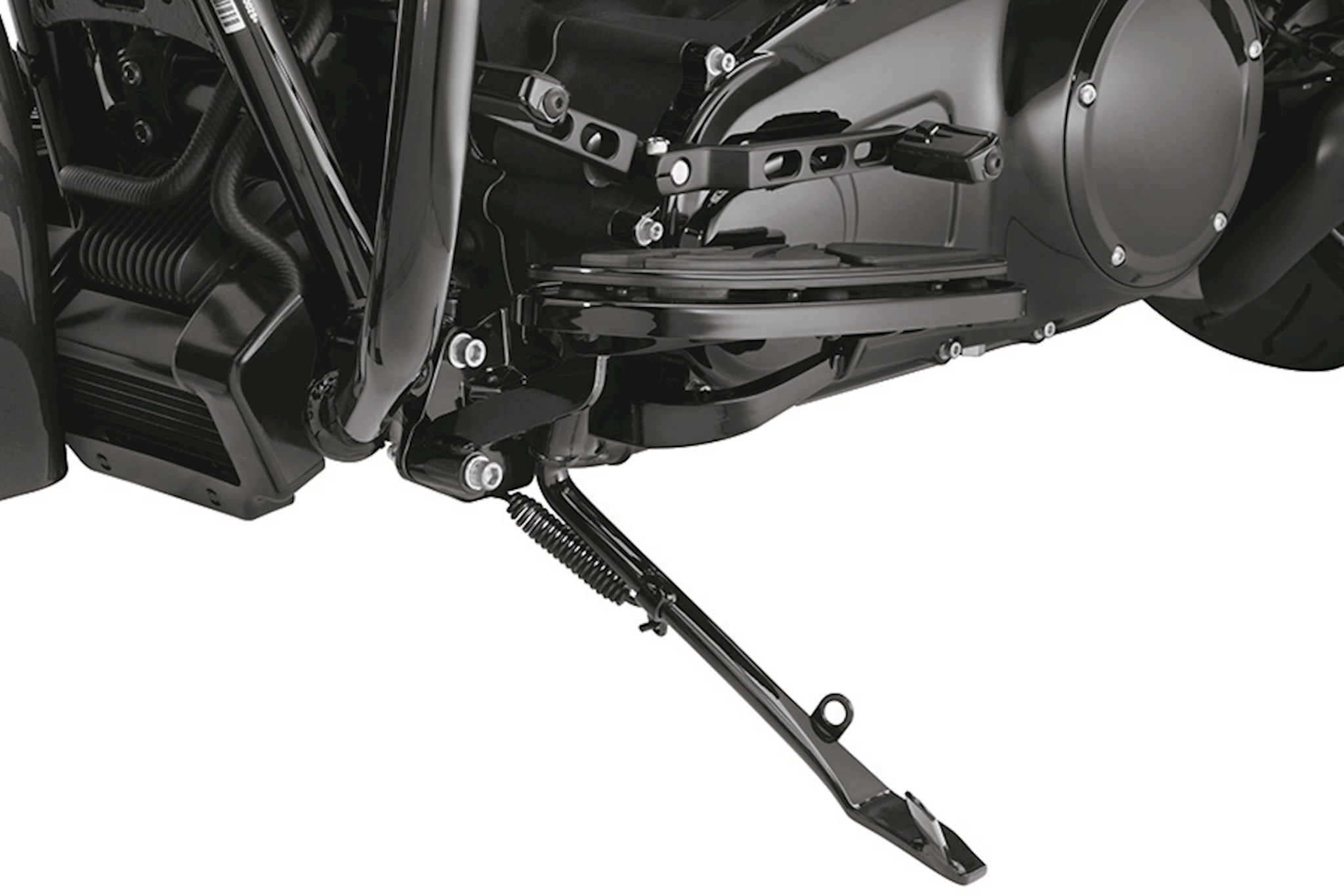 With this beautiful gloss black jiffy stand kit, your Dark Custom Touring model won’t just stand on its own – it will stand out. Using the Original Equipment jiffy stand and mount to ensure quality and fitment, these pieces are finished in rich gloss black to blend into the frame and help disguise this very visual component on the vehicle. Installation reuses Original Equipment spring and hardware.