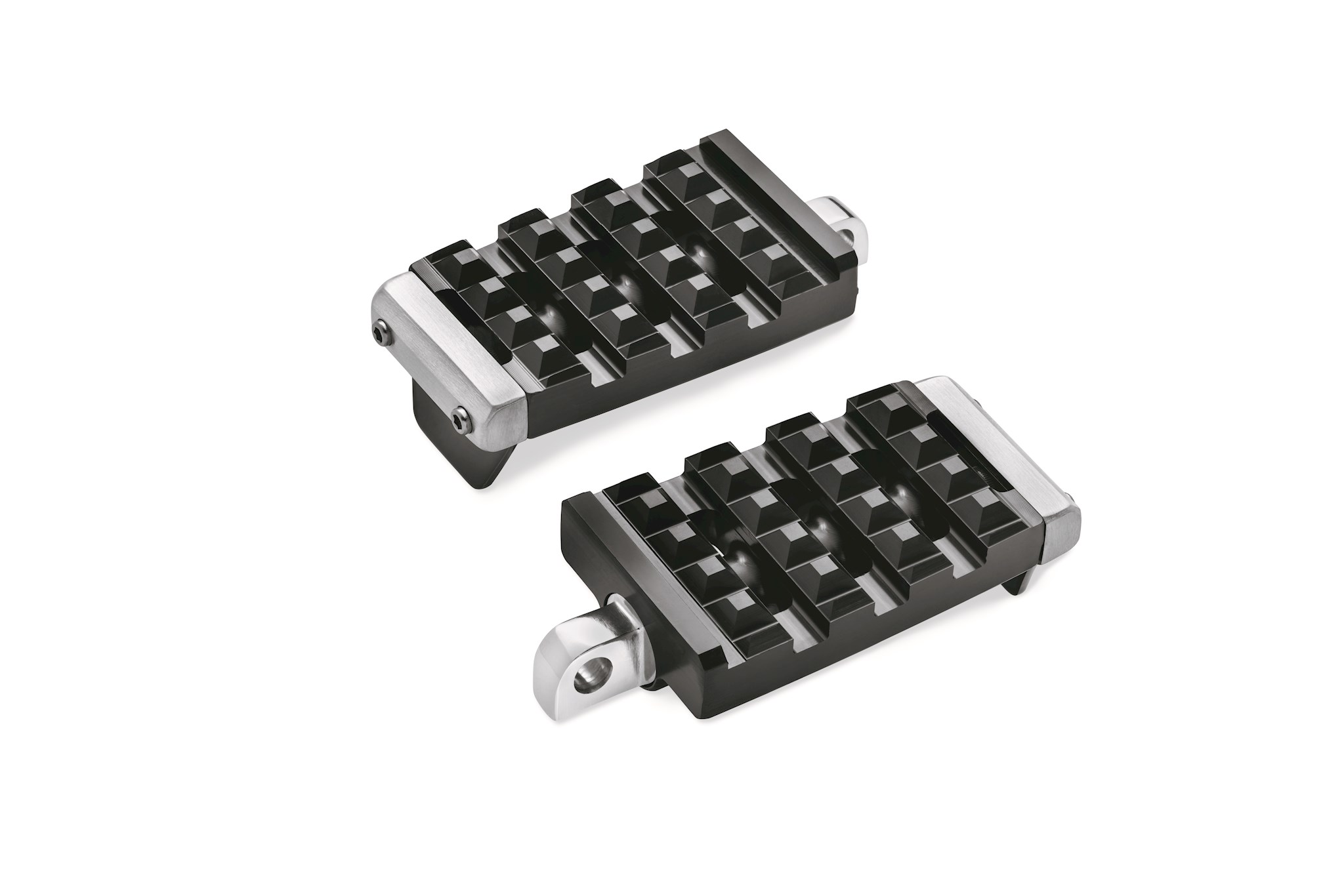 Express your bold, renegade attitude. The Dominion™ Collection Rider and Passenger Foot Controls let you set your own styling direction. Crafted from aluminum, these Foot Controls feature a rugged machined surface with raised knubs for increased grip and interchangeable inserts in brushed aluminum, brushed black, bronze powder-coated or brushed orange anodized (sold separately) that allow you to create your own unique look.