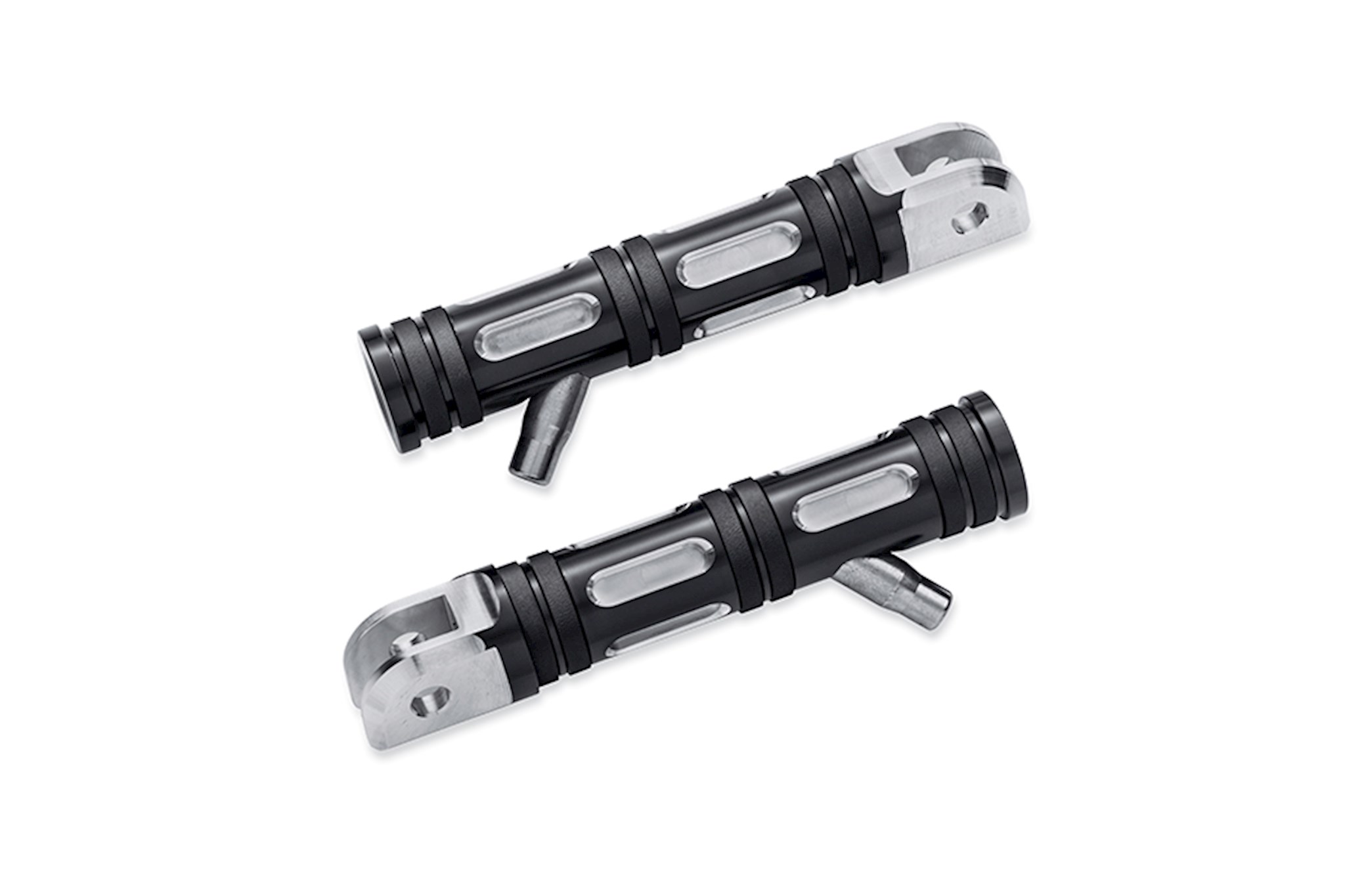 The slim footpeg design allows a comfortable pivot point and the wide surface and narrow rubber bands hold your boots firmly in place.