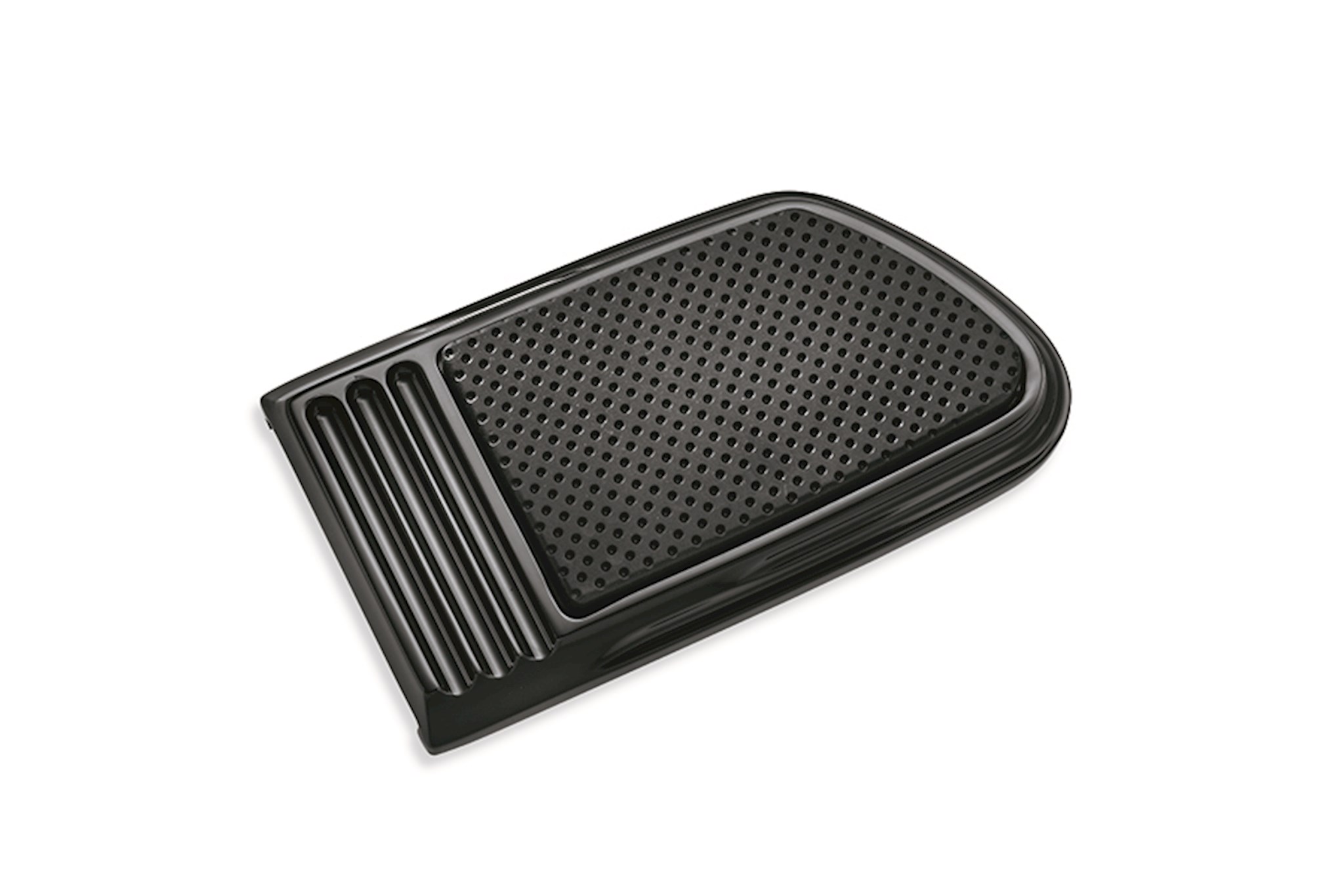Defiance Collection - Black Anodized Show your complete disregard for the rules. Defined by sweeping curves, this complete assortment of hand and foot controls feature a rich “tuxedo black” finish that is the perfect complement to your sinister ride. The design incorporates a field of textured black rubber surrounded with deep longitudinal lines, and is finished with a contemporary “H-D” logo. The complete Defiance Collection sets a new rebellious direction in customizing. Defiance Brake Pedal Pads - Black Anodized This stylish brake pedal pad features a rich black rubber panel set into the recessed surface, surrounded by deep accent grooves. The easy-to-install pad is available in two sizes to fit many Harley models.