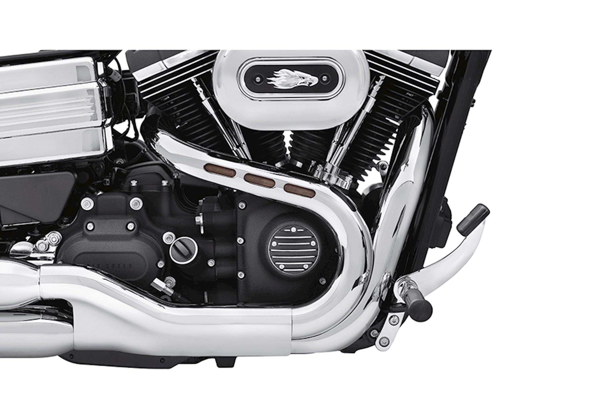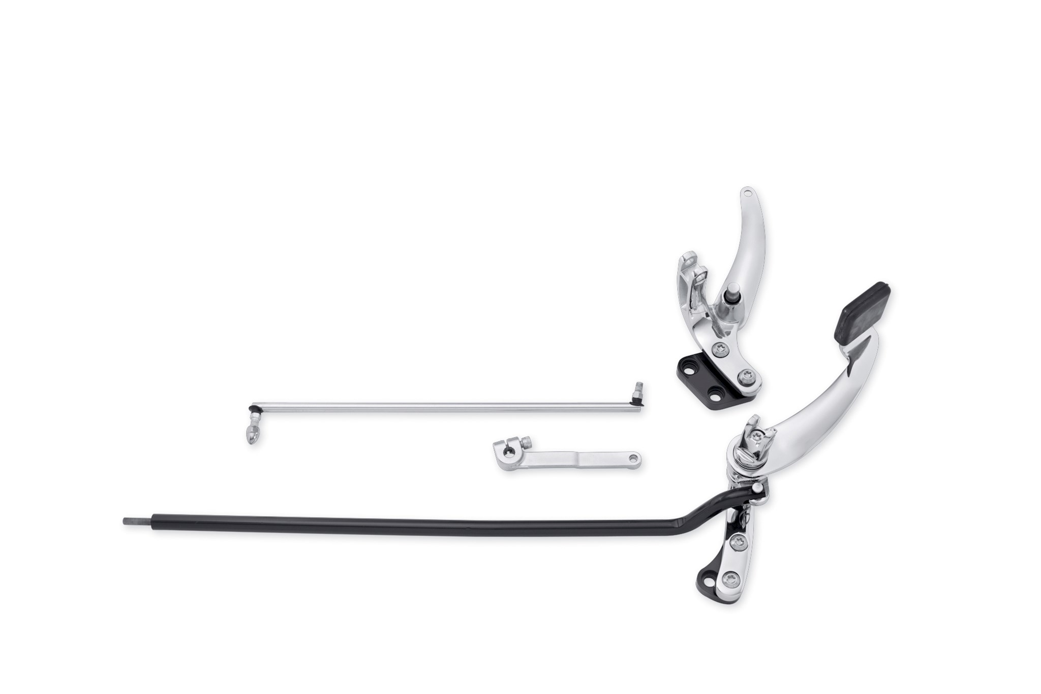 Want to stretch the ridng position of your mid-control equipped model, but not comfortable with the long reach to factory-position forward controls? This complete kit is the perfect alternative. It positions the feet up and forward 10.0" from the mid-control position, but 1.0" closer to the rider than the standard position factory forward controls, placing the rider's boot at a comfortable pivot point for improved support and leverage. Available in chrome or gloss black finish, the kit includes left and right footpeg supports, brake and shift lever assemblies, brake and shift linkages and all required hardware. Fits '06-later Dyna models equipped with mid-controls. FLD models require separate purchase of footpegs.