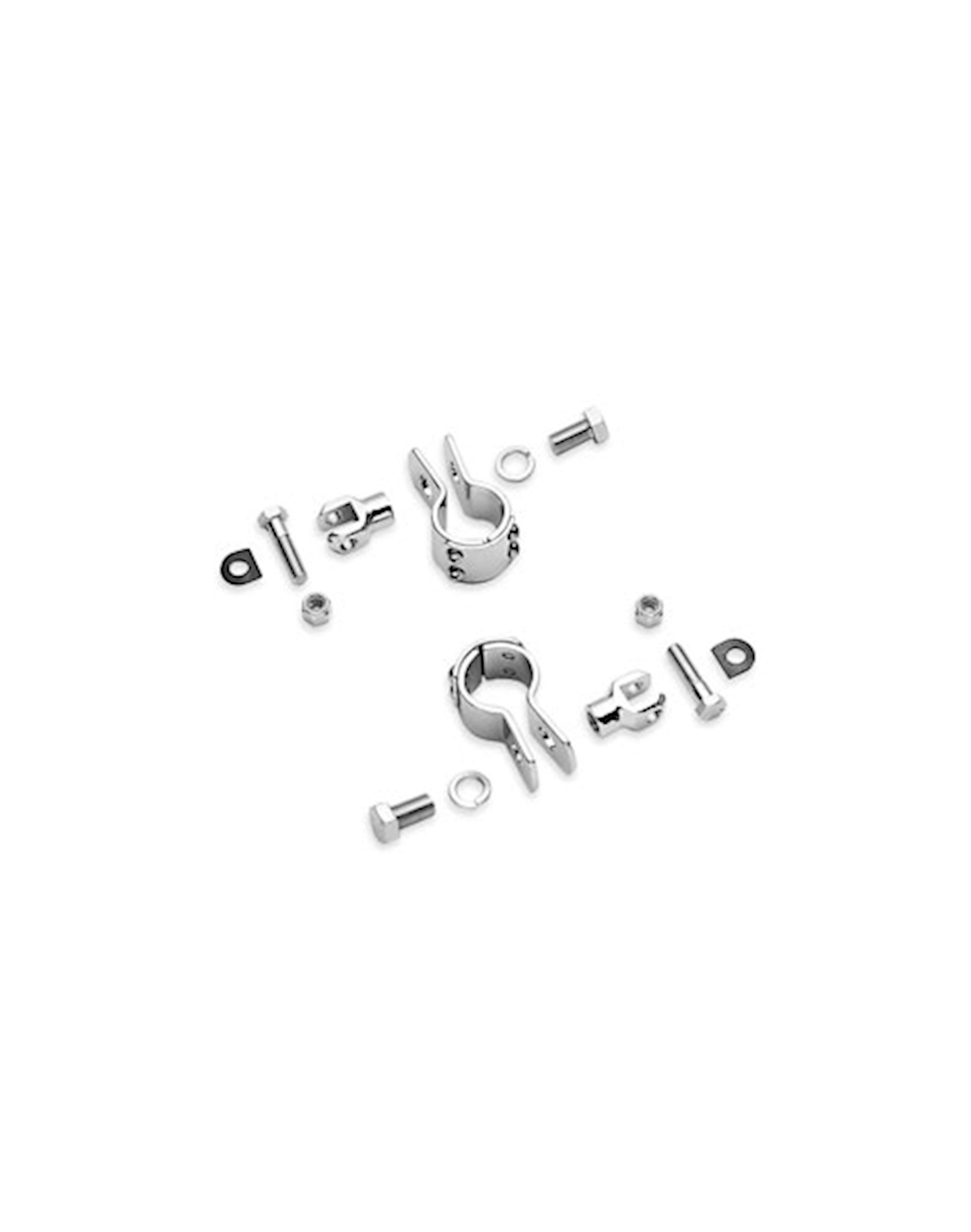 Allows easy installation of any H-D® male mount-style footpegs on to H-D front engine guards. All pieces necessary are included in the kit, with no extra hardware to buy.